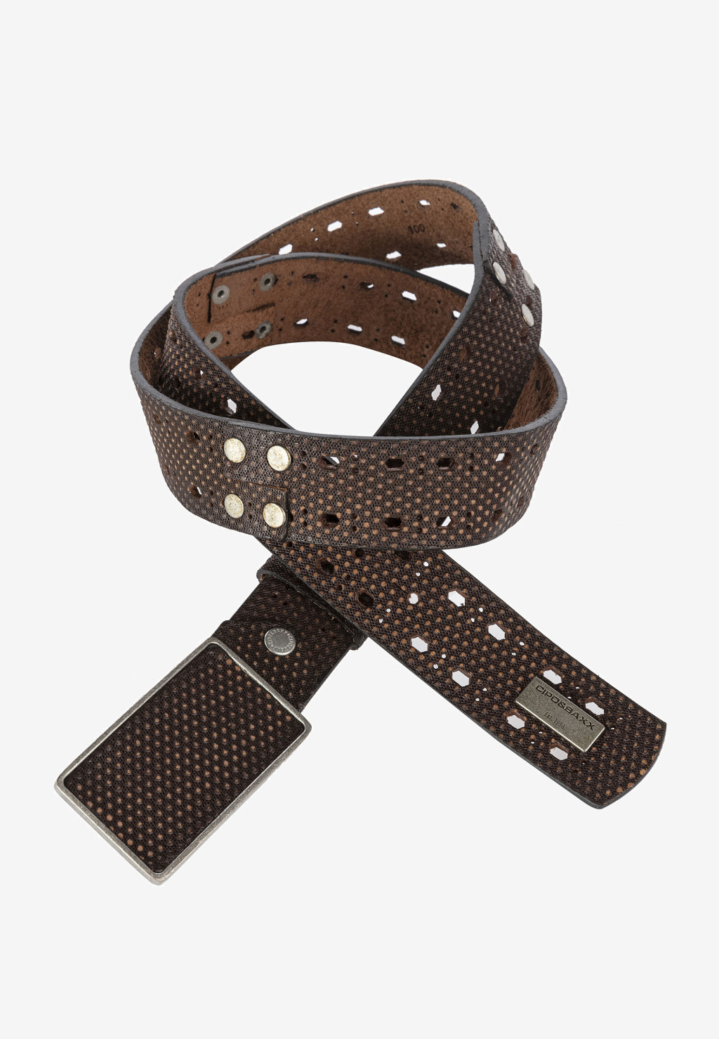 Ez az öv Cipo & Baxx férfiaknak Bármelyik nadrágot a helyén tartja. A feltűnő lyukkialakítás igazi tekintetgyönyörködtetővé teszi ezt az egyébként egyszerű övet. A felhasznált valódi bőr biztosítja, hogy az öv különösen kiváló minőségű és tartós legyen. Az övméretek a csat aljától a középső lyukig mért hosszt cm-ben jelzik.