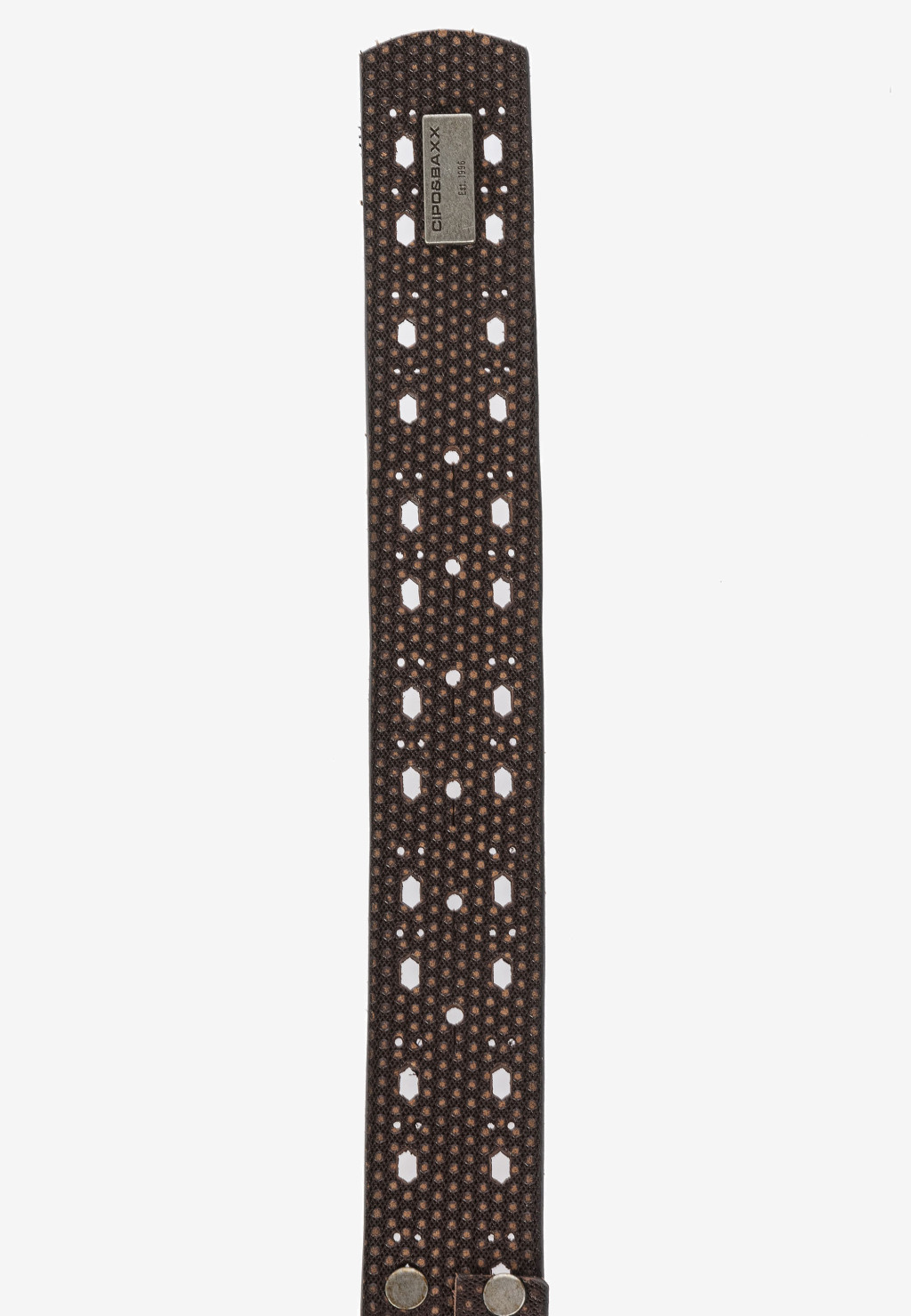 Ez az öv Cipo & Baxx férfiaknak Bármelyik nadrágot a helyén tartja. A feltűnő lyukkialakítás igazi tekintetgyönyörködtetővé teszi ezt az egyébként egyszerű övet. A felhasznált valódi bőr biztosítja, hogy az öv különösen kiváló minőségű és tartós legyen. Az övméretek a csat aljától a középső lyukig mért hosszt cm-ben jelzik.