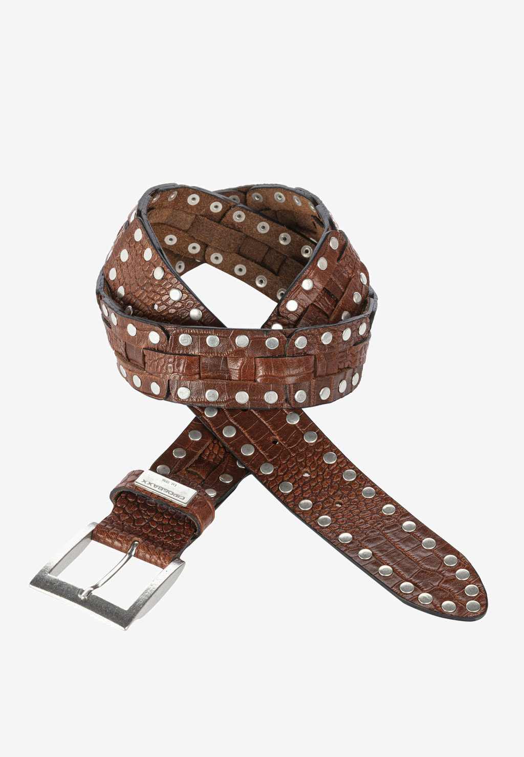 CG175 Férfi bőr öv dombornyomással és szegecsekkel