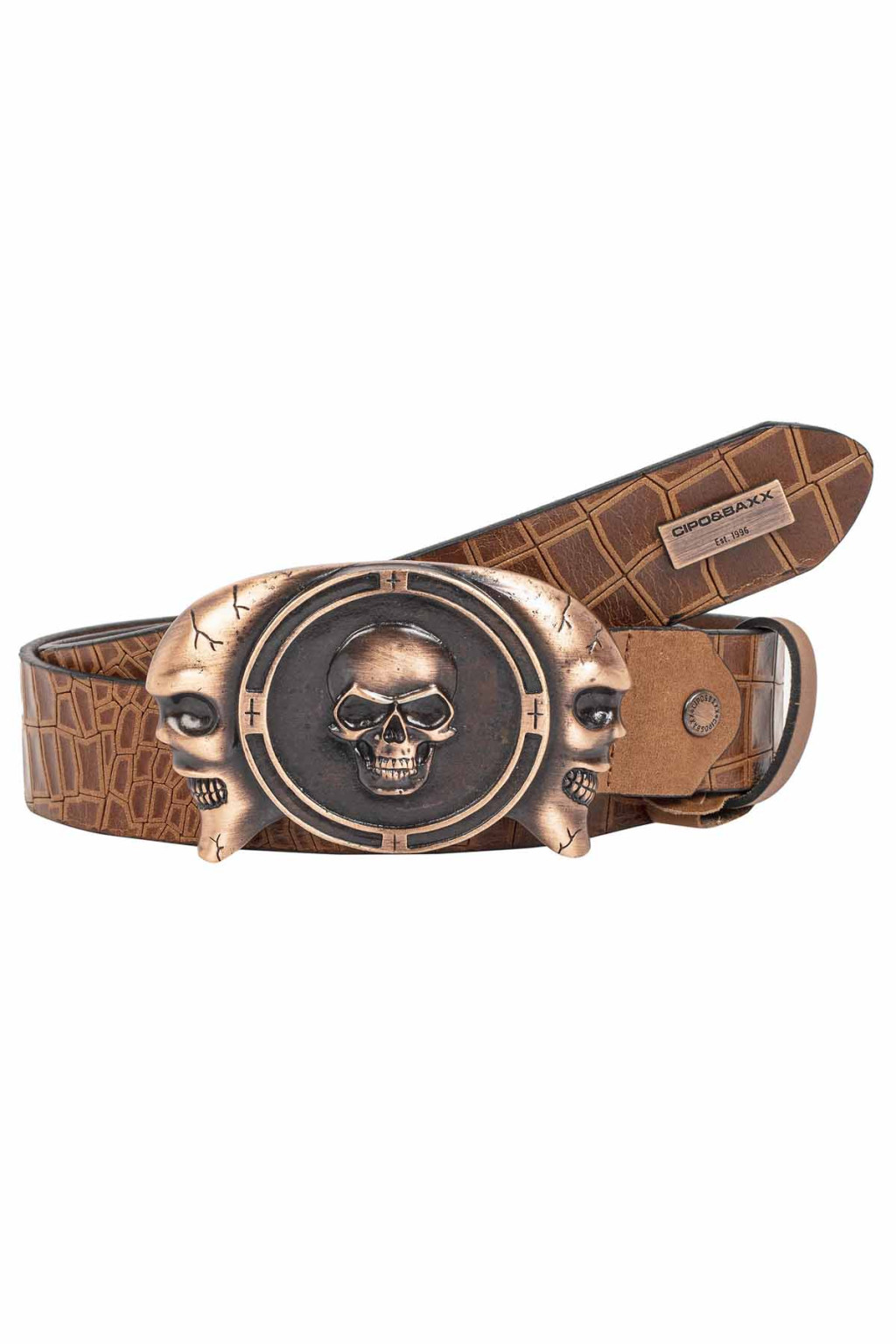 Ez a divatos Cipo & Baxx öv az elegáns elemeket nagyszerű, rock ihlette kiemelésekkel ötvözi. A kiváló minőségű modell sima, puha bőrből készült. Menő koponya mintával rendelkezik, és nagyszerű kontrasztot alkot a bőr sötét színével. Ez olyan megjelenést hoz létre, amely bármilyen öltözéket igazi tekintetgyönyörködtetővé tesz.