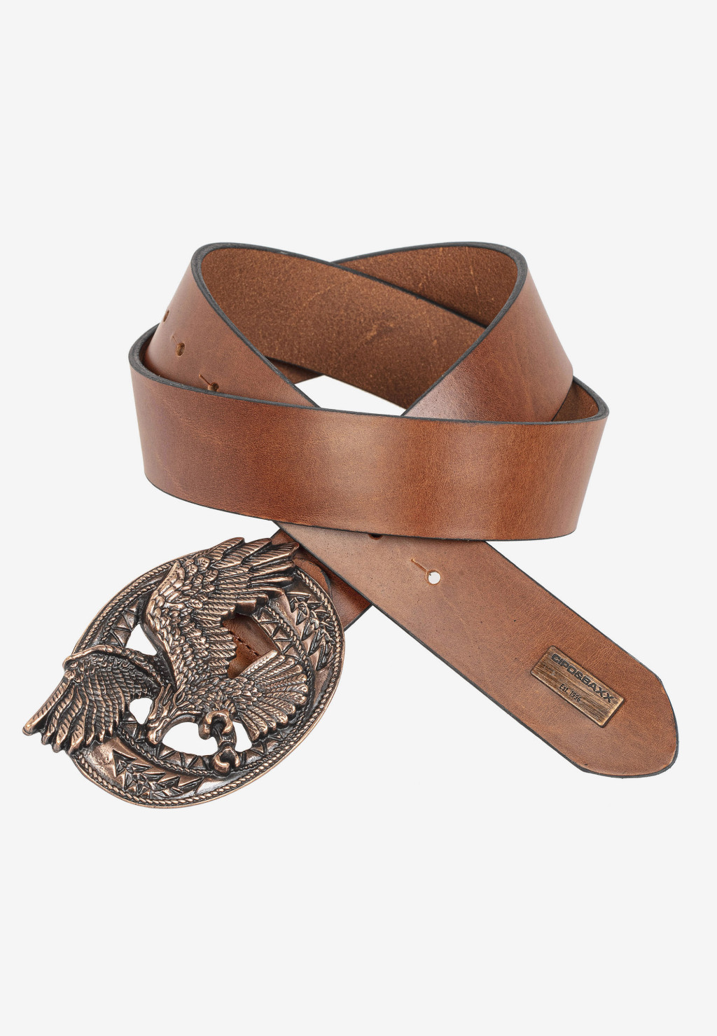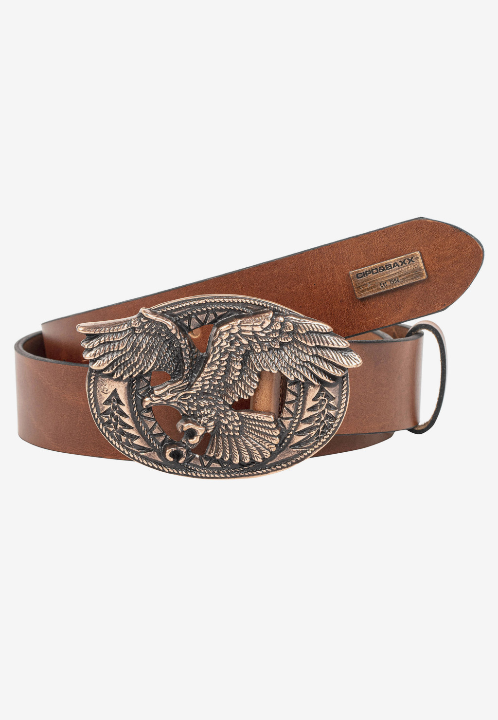 Ez a divatos Cipo & Baxx bőröv férfiaknak feltűnő, sas alakú csattal rendelkezik. Lezser megjelenésével ez az öv szinte bármilyen öltözékkel könnyen kombinálható, és laza külsőt kölcsönöz ruházatának.