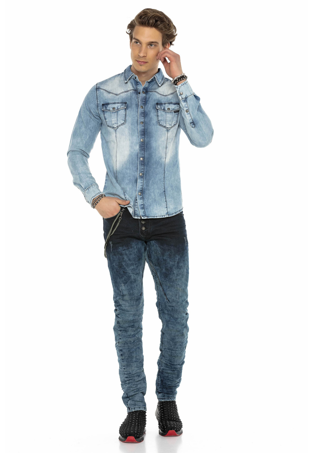 Ez a sikkes Cipo & Baxx farmering első osztályú kényelmével és vagány megjelenésével nyűgöz le. Az ing tökéletesen illik a hétköznapi ruhatáradhoz, és számos alkalomra remekül kombinálható.