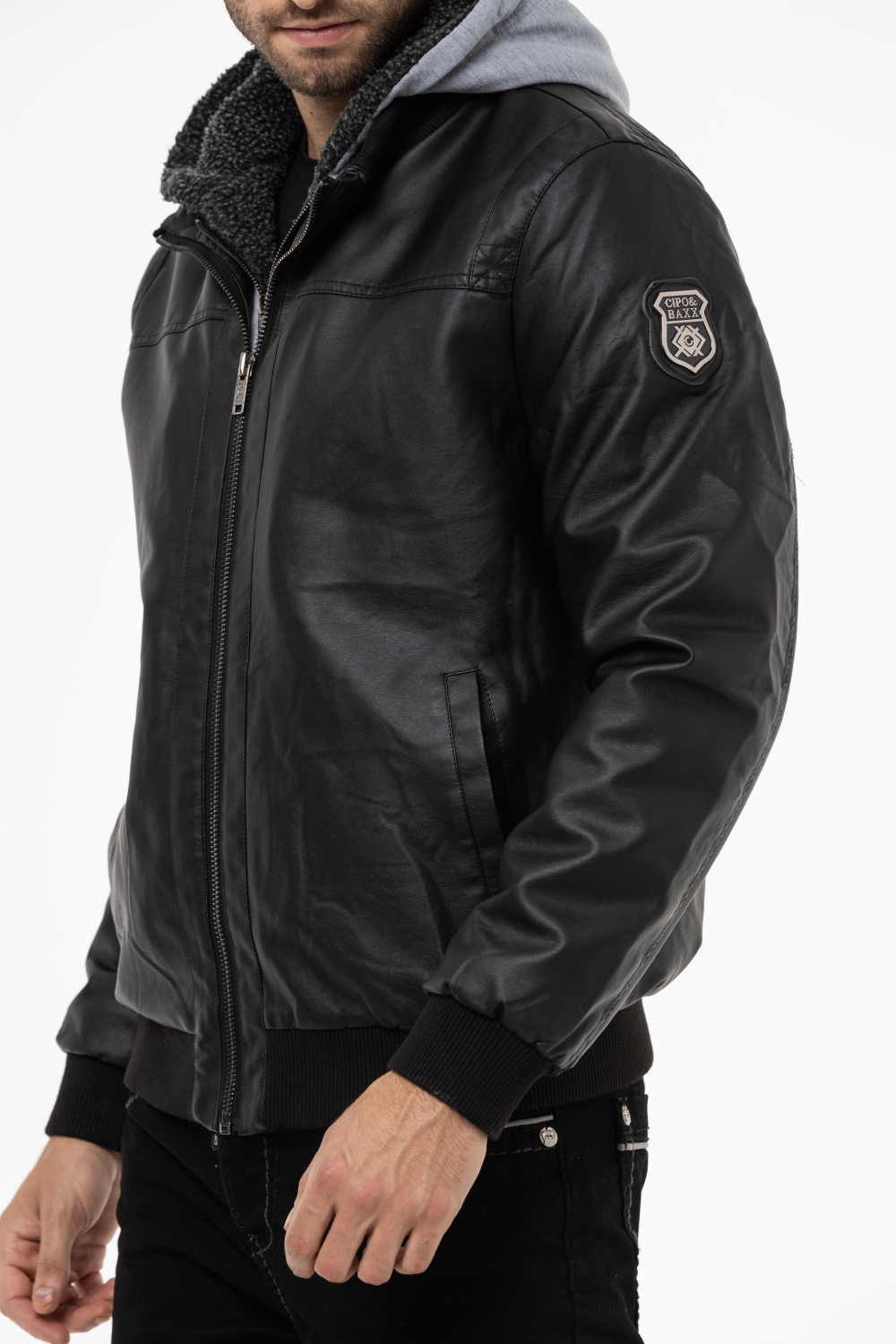 CIPO & BAXX FÉRFI MŰBŐR KABÁT CM214 BLACK