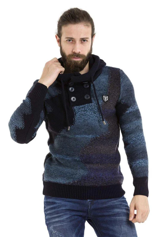 CIPO&BAXX DIVATOS FÉRFI KÖTÖTT PULÓVER MATRÓZKÉK
