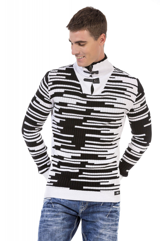 CIPO&BAXX FÉRFI KÖTÖTT PULÓVER CP245 WHITE-BLACK