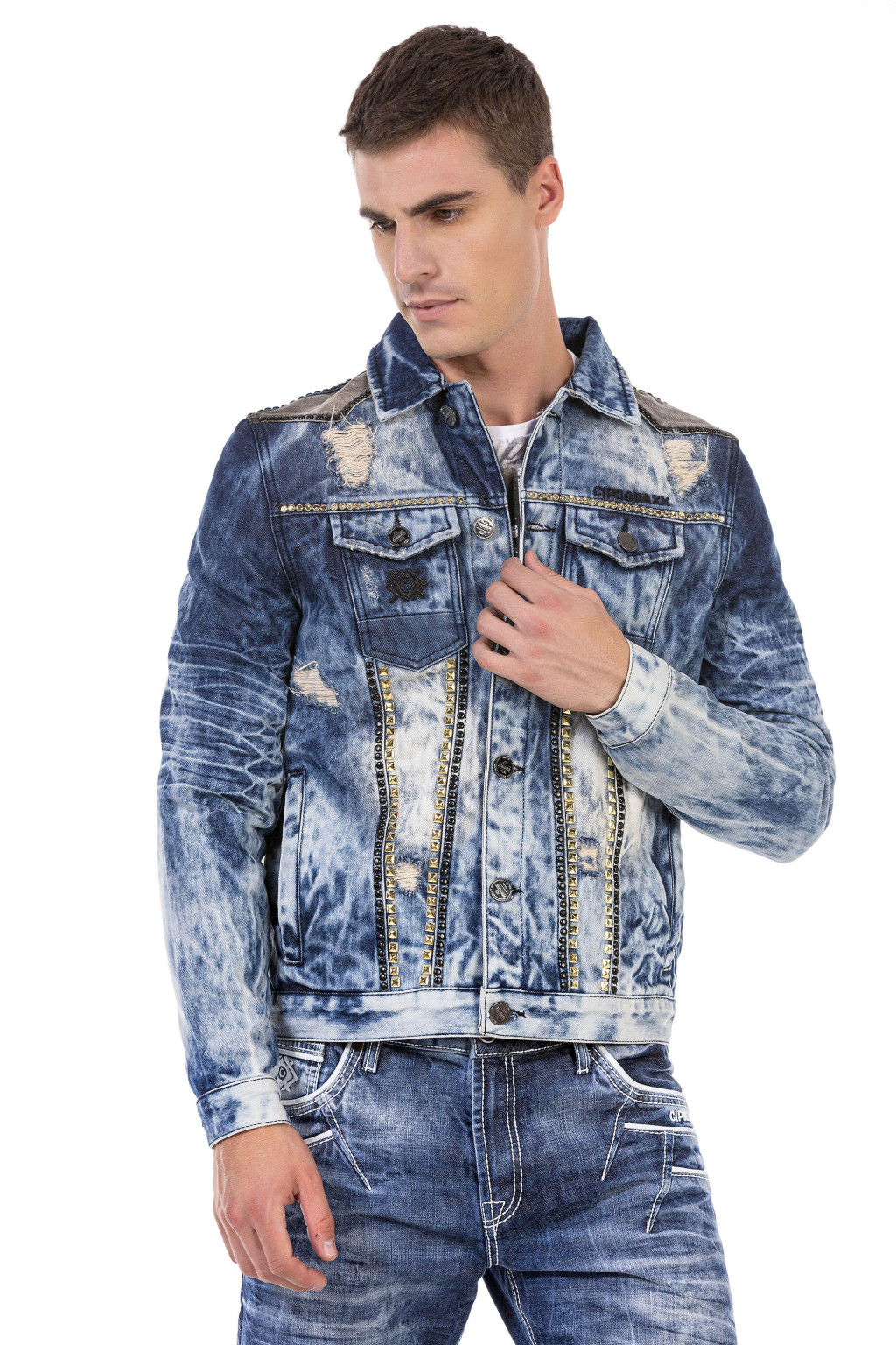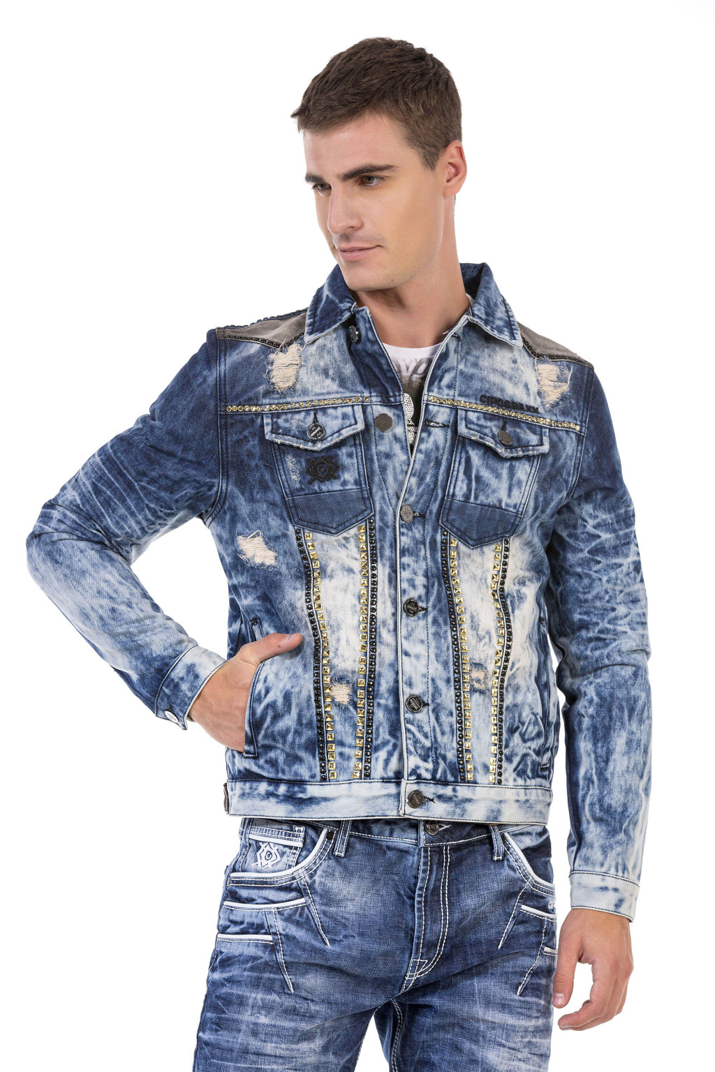 Ez a Cipo & Baxx férfi dzseki lenyűgözően bizonyítja, hogy a farmer megjelenés mindig kiemelkedik. Nagyszerű dizájnja tökéletesen kiegészít bármilyen megjelenést, függetlenül attól, hogy milyen öltözékkel párosítják. Ez a modell a magas minőségével is lenyűgöz.
