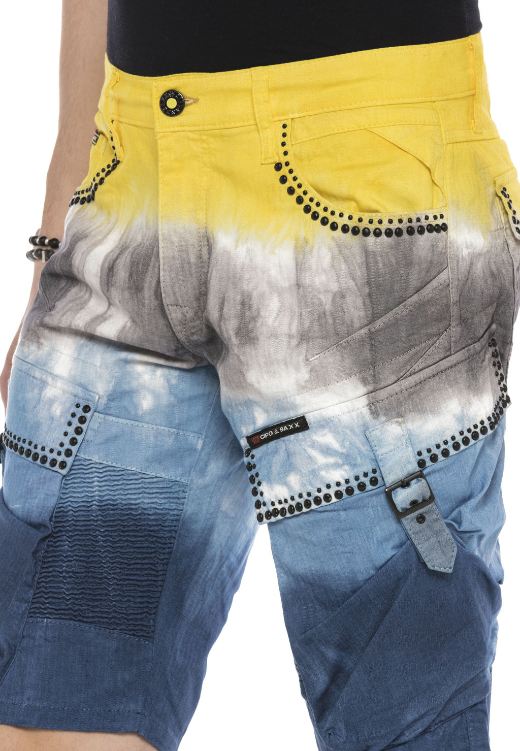 CK211 Férfi Capri farmer rövidnadrág feltűnő mosással és szegecsekkel