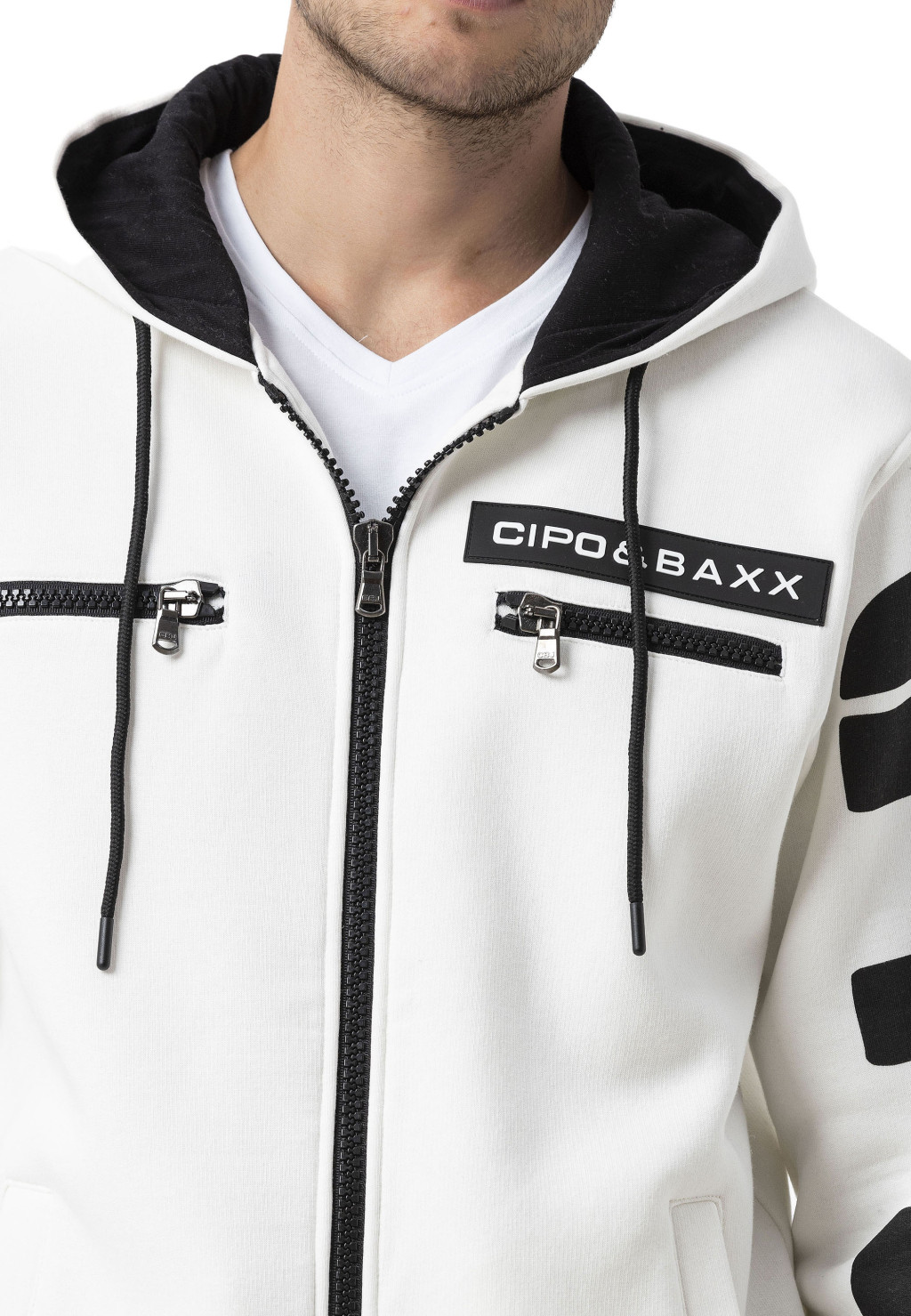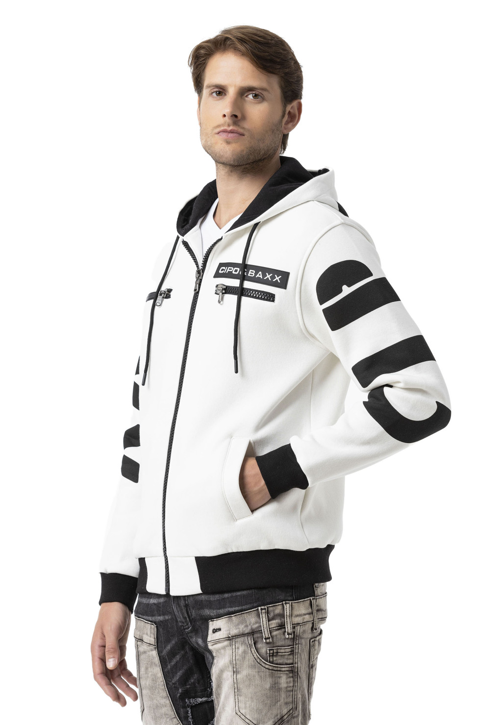A CIPO & BAXX CL577 férfi kapucnis melegítődzsekije a sportos stílust ötvözi a modern dizájnnal. A melegítődzseki lenyűgözi az ujjakon található feltűnő fehér részletekkel és a mellkason található visszafogott márkalogóval. A kényelmes szabás, a puha anyag és a teljes hosszúságú cipzár tökéletes társsá teszi a mindennapi és a szabadidős viselethez. Kapucnijával és praktikus zsebeivel ötvözi a funkcionalitást és a stílust. Akár farmerrel, akár sportruházattal viselik, ez a melegítődzseki kötelező darab a divattudatos férfiak számára.