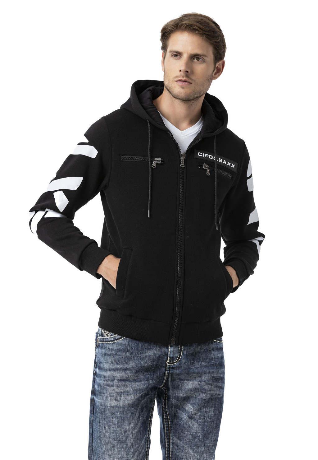 A CIPO & BAXX CL577 férfi kapucnis melegítődzsekije a sportos stílust ötvözi a modern dizájnnal. A melegítődzseki lenyűgözi az ujjakon található feltűnő fehér részletekkel és a mellkason található visszafogott márkalogóval. A kényelmes szabás, a puha anyag és a teljes hosszúságú cipzár tökéletes társsá teszi a mindennapi és a szabadidős viselethez. Kapucnijával és praktikus zsebeivel ötvözi a funkcionalitást és a stílust. Akár farmerrel, akár sportruházattal viselik, ez a melegítődzseki kötelező darab a divattudatos férfiak számára.