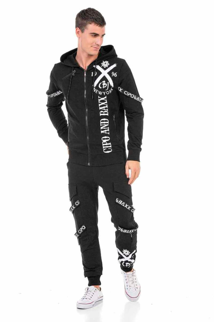 Ez a szokatlan Cipo & Baxx férfi melegítőruha minden, csak nem hétköznapi. Kényelmes viseletet biztosít a kiváló minőségű pamut anyagának köszönhetően, a rugalmas mandzsetták pedig tökéletes illeszkedést biztosítanak csúszásmentesen. A pulóver praktikus kapucnival és cipzáras mellkasi és oldalsó zsebekkel rendelkezik. A melegítőnadrág kényelmes, rugalmas derékpánttal és oldalsó zsebekkel rendelkezik, így rengeteg helyet biztosít a dolgok tárolására. A modell nagyszerű márkás bújtatói és mintái vizuálisan is igazi tekinteteket gyönyörködtetővé teszik, tökéletes szabadidőhöz vagy sporthoz.