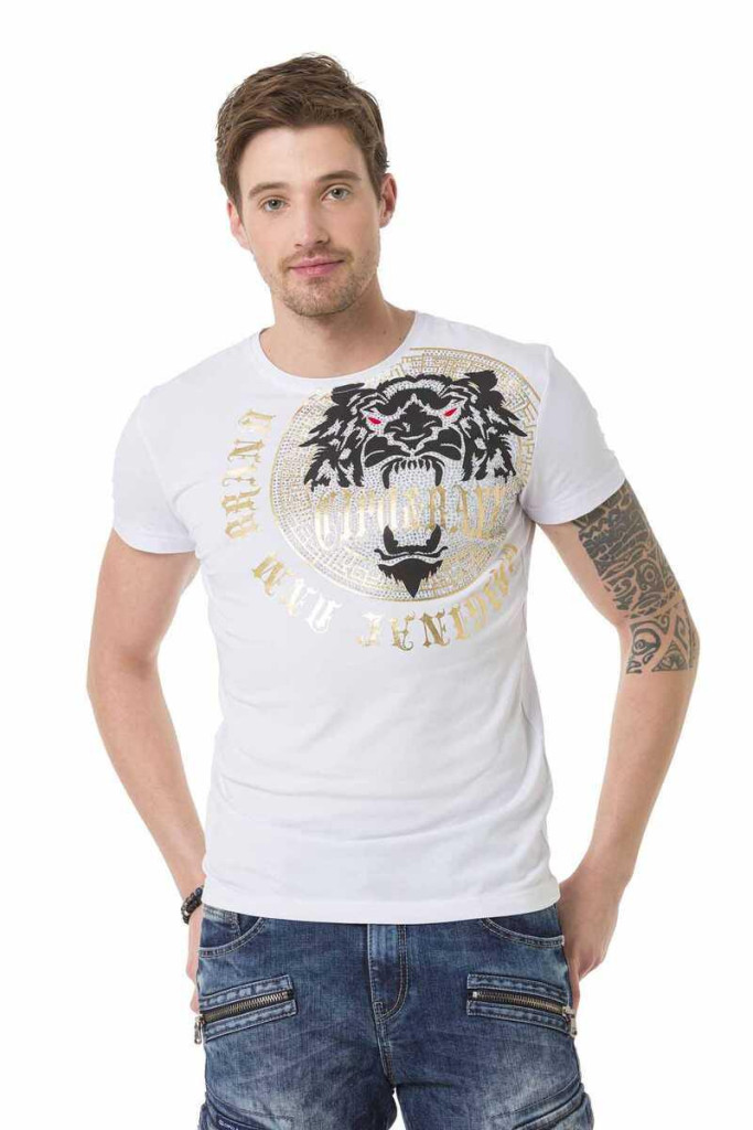 Ezzel a Cipo & Baxx férfi pólóval nem fogsz mellényúlni. A dizájnja kiemeli divatos stílusodat és kiemel bármilyen öltözéket, miközben imádni fogod a kényelmét. Mindenekelőtt lenyűgöző a vagány, flitteres szegéllyel ellátott elülső minta, amely nagyszerű kiegészítője lehet a ruhatáradnak.