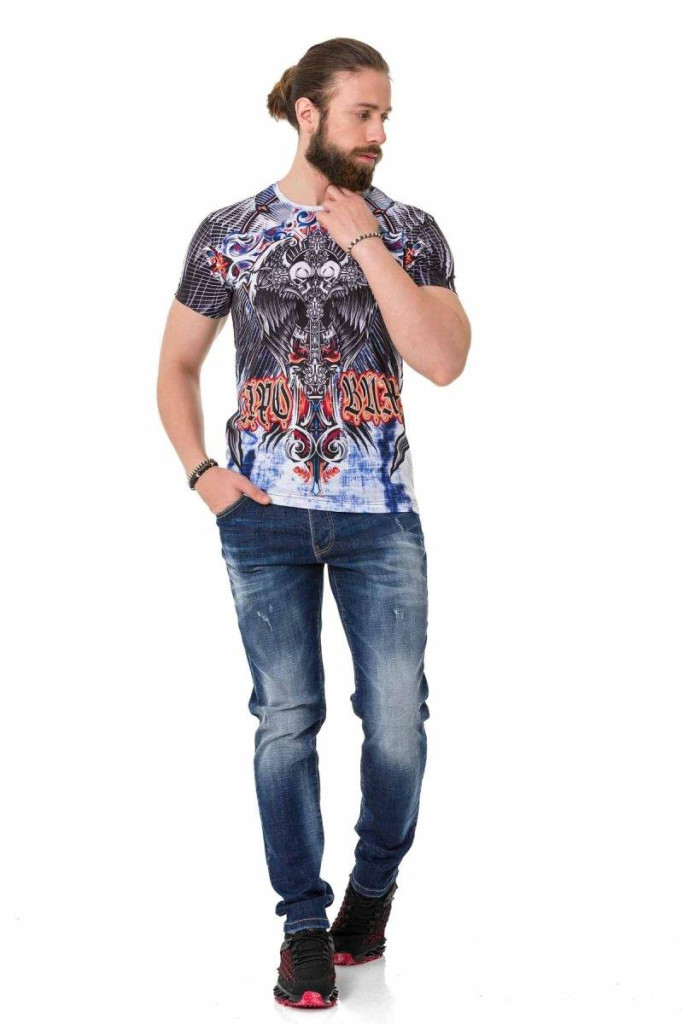 Ennél feltűnőbb nem is lehetne. Ez a lézernyomott Cipo & Baxx póló álomszerű darab mindazok számára, akik kedvelik az extravagáns és vagány megjelenést. Klasszikus kerek nyakkivágással rendelkezik, és pamut és elasztán összetételének köszönhetően mindenkor a legjobb kényelmet nyújtja.