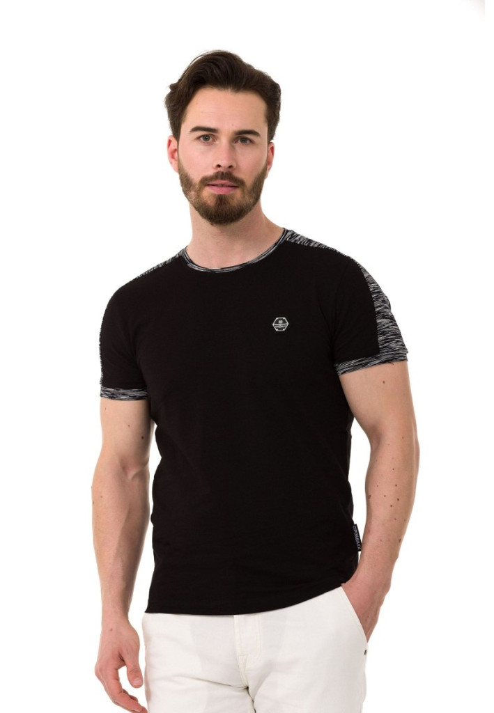 A Cipo & Baxx márka nagyszerű, kerek nyakú férfi inget kínál. Pamutkeverékből készült, így még melegebb napokon is szuper kényelmes, és az oldalakon és az ujjakon található menő mintáknak köszönhetően kiemelkedik. Ez sportos megjelenést kölcsönöz, ami biztosan elkápráztat.