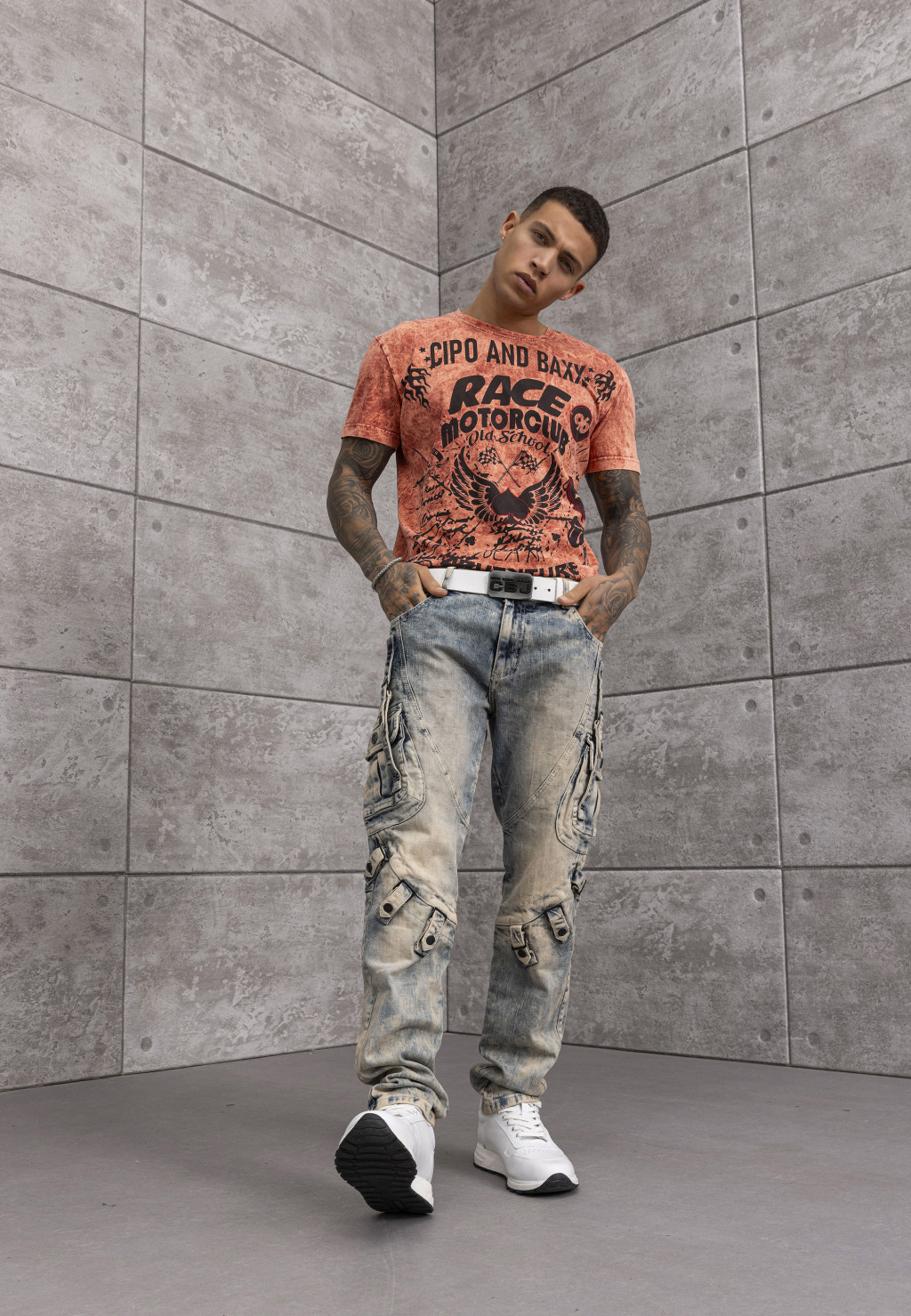 A CT800 férfi póló a feltűnő dizájnt ötvözi a magas viselési kényelemmel. Feltűnő mosott hatásával és a hátoldalon található domináns sas mintával ez az ing bármilyen városi megjelenés meghatározó darabjává válik. Az elejét versenymotívumok és feliratok díszítik, dinamikus megjelenést kölcsönözve. A normál szabás és a klasszikus kerek nyak kényelmes viseletet biztosít, ideális mindennapi viseletre vagy szabadidős tevékenységekhez. Különböző mosási változatokban kapható – laza, mégis erőteljes stílusért.