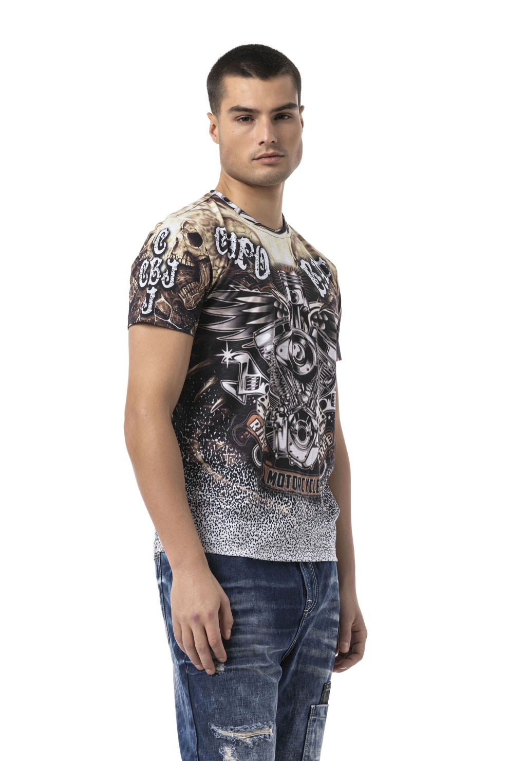 Fedezze fel stílusos, kerek nyakú férfi pólónkat, amelyen feltűnő, teljes felületen nyomtatott minta található elöl és hátul. Ez a póló nemcsak divatos kijelentés, hanem tisztelgés a motorok iránti szenvedély előtt is. A feltűnő "Motorcycles" felirat vagány, városi megjelenést kölcsönöz a pólónak, amely tökéletes a motorkerékpár-rajongók és a trenddiktátorok számára.