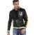 -Stílusos fekete műbőr dzseki, puha jó minőségű műbőrből készült. Szűkített fazon,kapucnis,felirattal díszítve elöl és hátul. Fekete és sárga szinkonbináció.