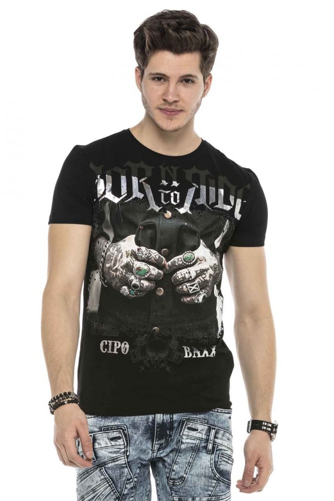 Cipo & Baxx limitált darabszámban gyártott, prémium minőségű, köves díszítésű, férfiaknak készült kerek nyakú póló.