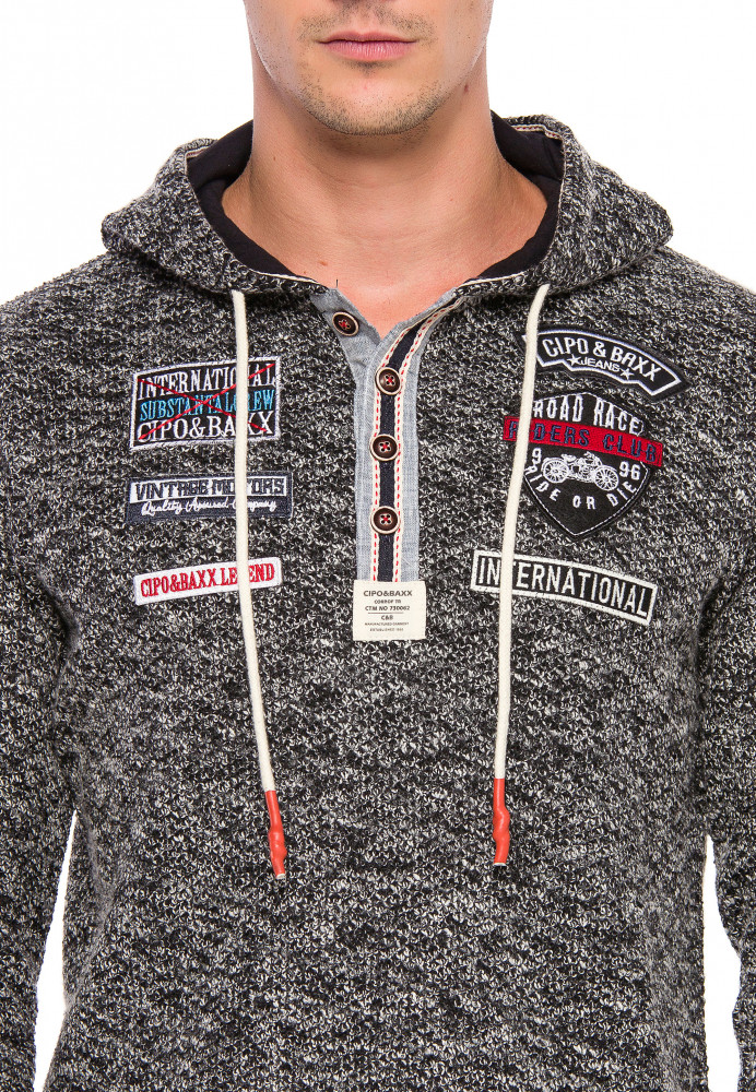 Cipo & Baxx férfiaknak készült prémium minőségű, kötött kapucnis pulóver.