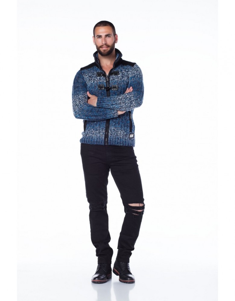 CIPO & BAXX DIVATOS FÉRFI KÖTÖTT PULÓVER CP124BLUE