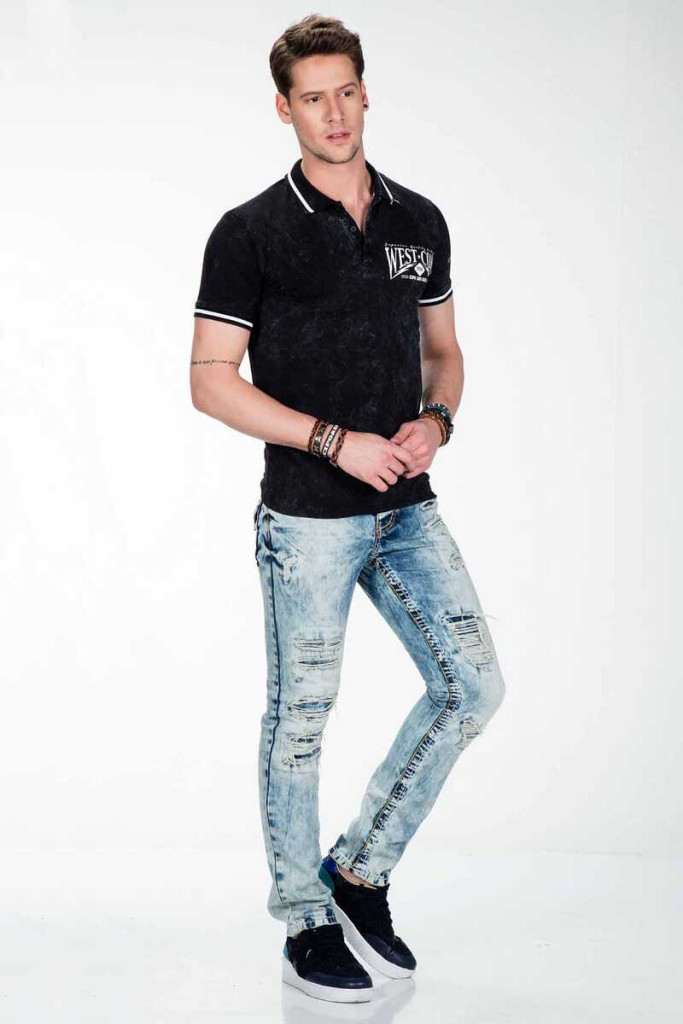 Ez a stílusos pólóing a klasszikus póló megjelenés és a modern stílusok keverékével, valamint divatos batikolt mintájával tündököl. A kis mértékben rugalmas tiszta pamutnak köszönhetően a felsőrész rendkívül kényelmes viseletet is biztosít. Különleges kiemelés a nagyméretű hátlapi nyomtatás, amely vizuálisan vonzza a figyelmet.