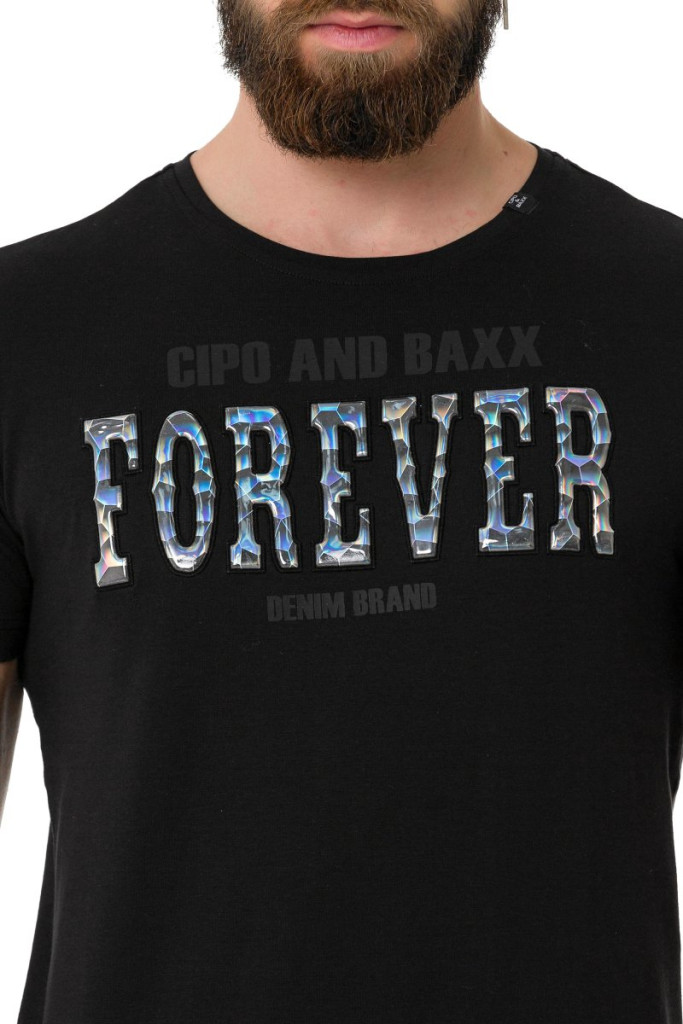 Ennél feltűnőbb nem is lehetne. Ez a Cipo & Baxx póló fényes és dombornyomott felirattal álomszerű darab mindazok számára, akik szeretik az extravagáns és vagány megjelenést. Klasszikus kerek nyakkivágással rendelkezik, és pamut és elasztán összetételének köszönhetően mindenkor a legjobb kényelmet nyújtja.