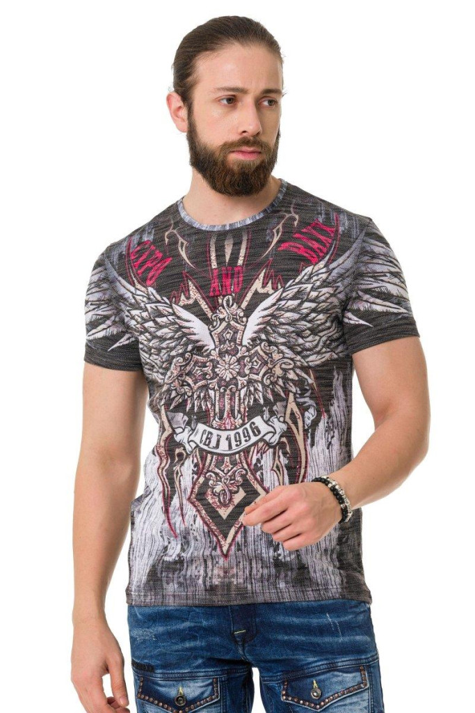 Ennél feltűnőbb nem is lehetne. Ez a Cipo & Baxx Wing Cross lézernyomtatással póló álomszerű darab mindazok számára, akik kedvelik az extravagáns és vagány megjelenést. Klasszikus kerek nyakkivágással rendelkezik, és pamut és elasztán összetételének köszönhetően mindenkor a legjobb kényelmet nyújtja.