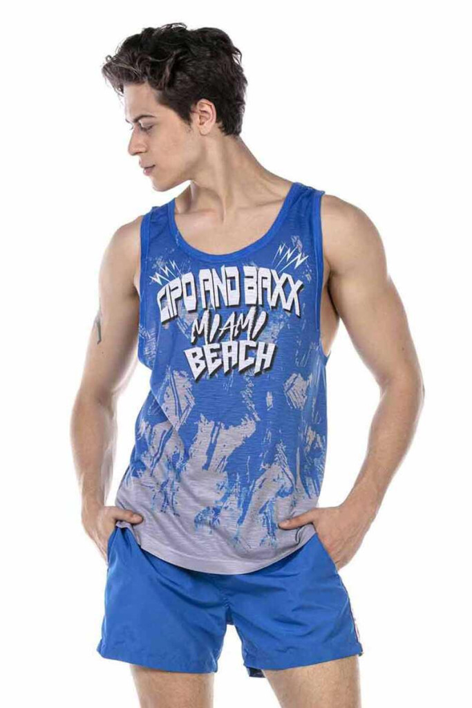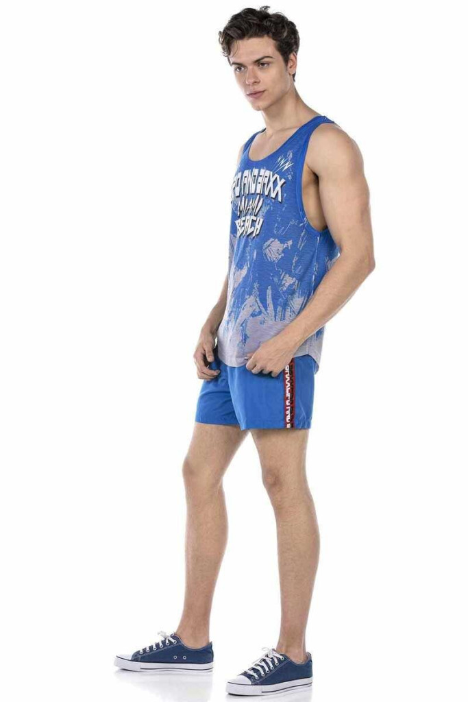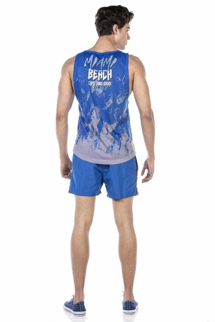 Ez a divatos nyári Cipo & Baxx férfi szett igazi tekinteteket vonz. Sportos megjelenésével, melyhez tartozik egy trikó és egy fürdőnadrág, garantáltan sok csodáló pillantást vonz, míg a nagyszerű szabásvonal optimális kényelmet biztosít minden helyzetben.
