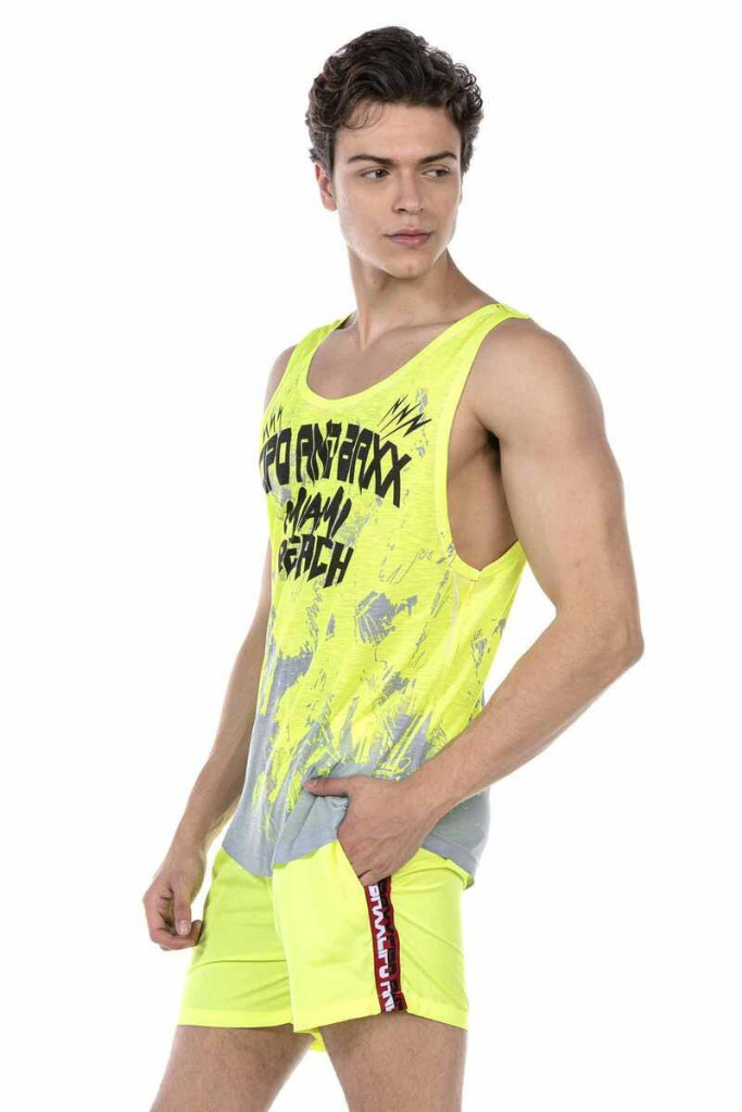 Ez a divatos nyári Cipo & Baxx férfi szett igazi tekinteteket vonz. Sportos megjelenésével, melyhez tartozik egy trikó és egy fürdőnadrág, garantáltan sok csodáló pillantást vonz, míg a nagyszerű szabásvonal optimális kényelmet biztosít minden helyzetben.
