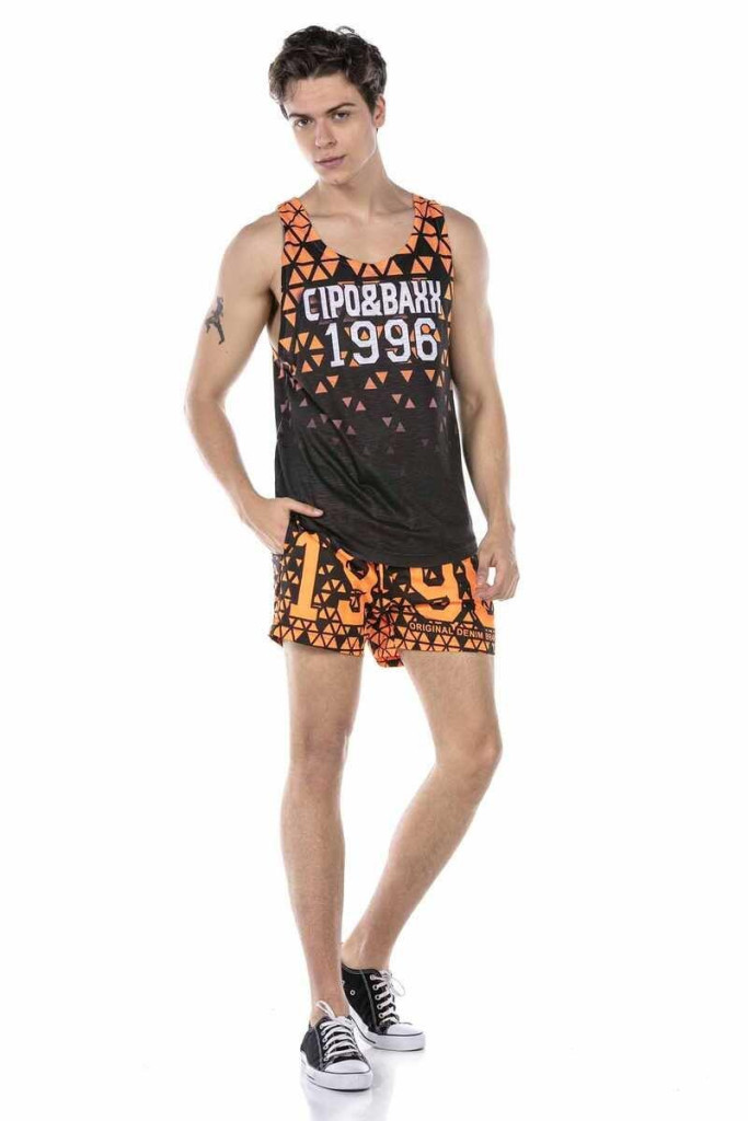 Ez a divatos nyári Cipo & Baxx férfi szett igazi tekinteteket vonz. Sportos megjelenésével, melyhez egy trikó és egy fürdőnadrág tartozik, garantáltan sok csodáló pillantást vonz, míg a nagyszerű szabásvonal optimális kényelmet biztosít minden helyzetben.