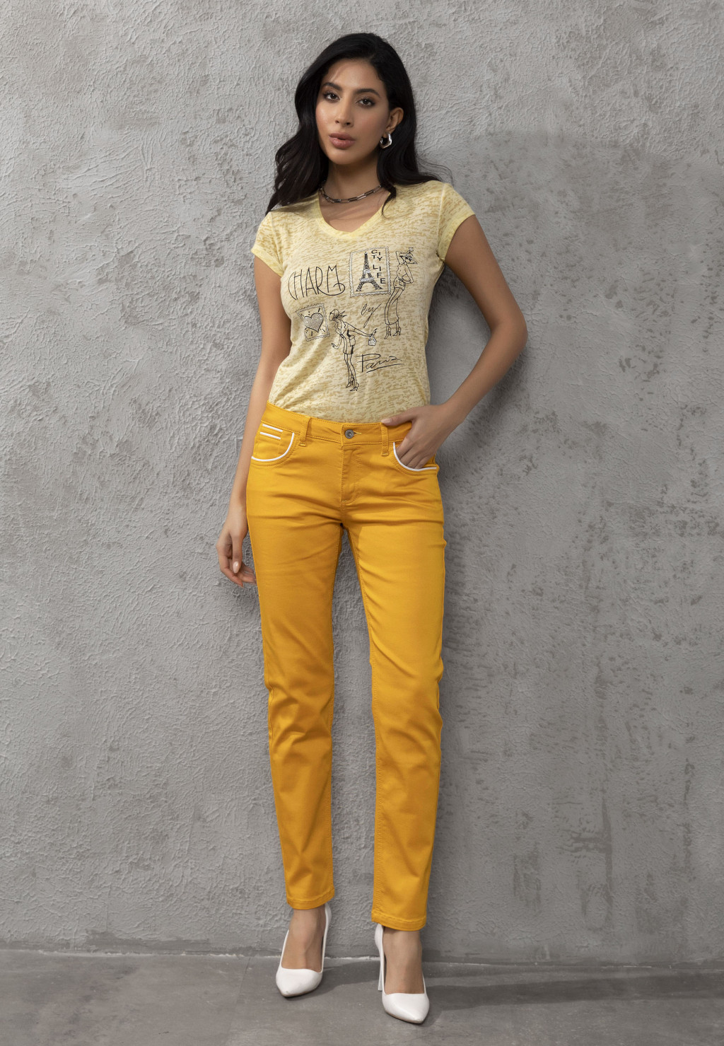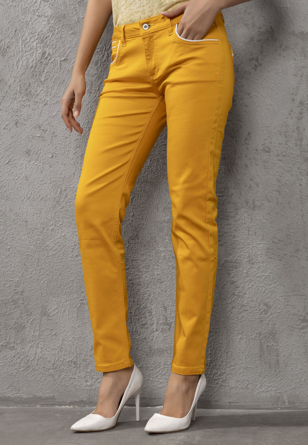 · Szövetnadrág kontrasztos varrásokkal a zsebeken