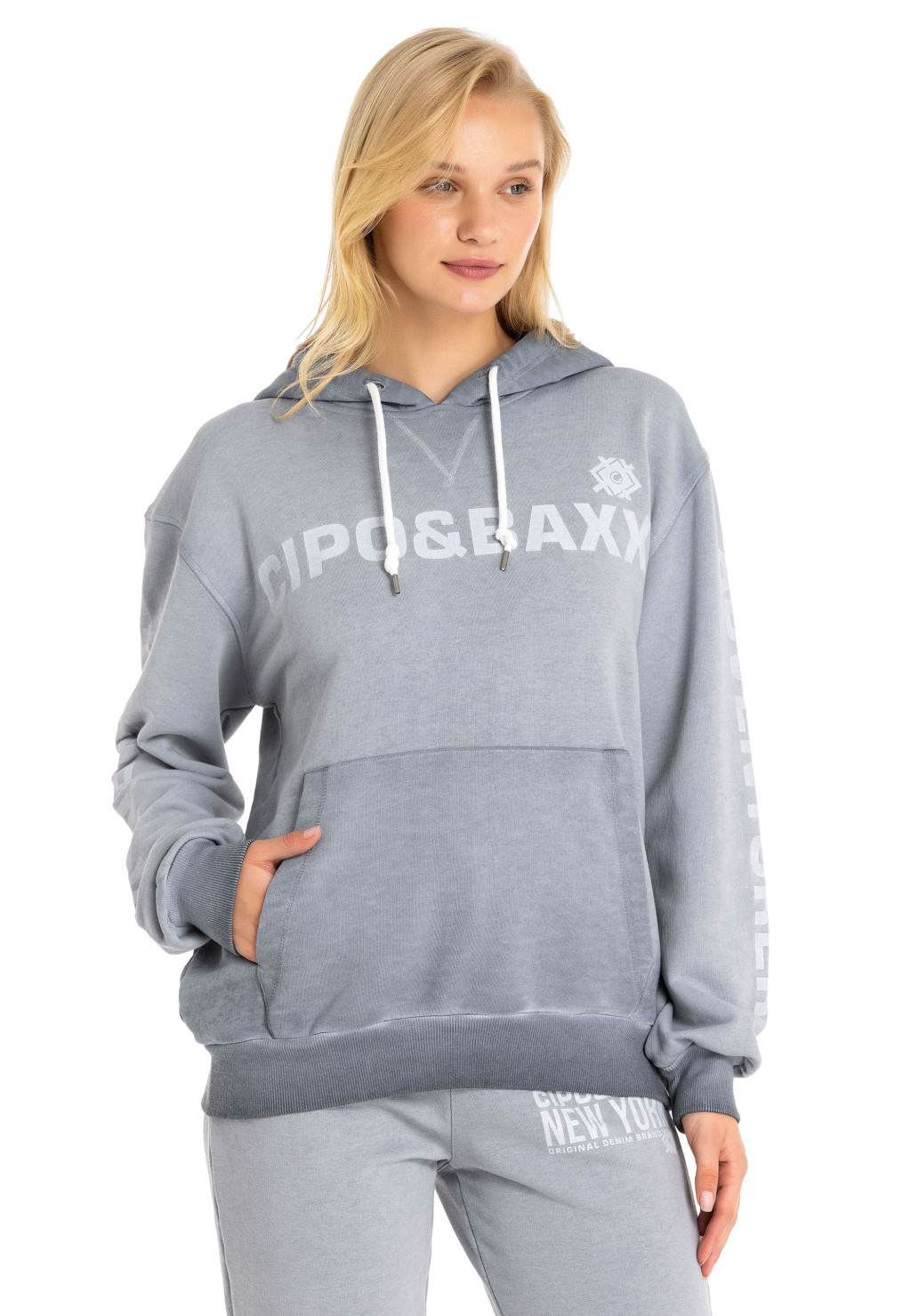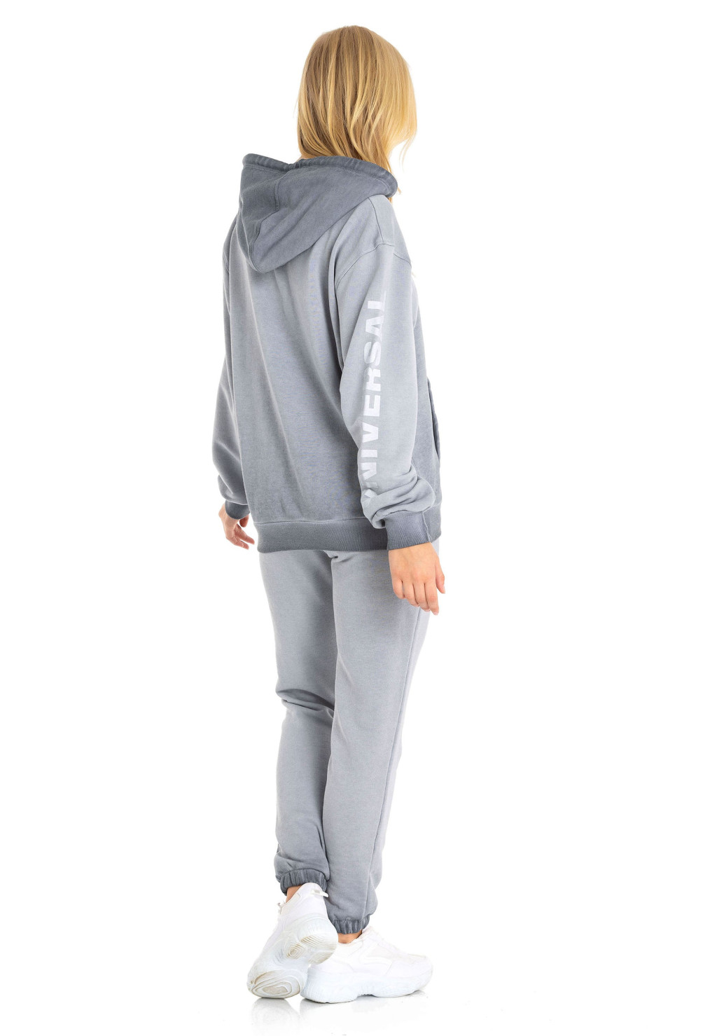 Kényelmes melegítőnadrágból és kapucnis pulóverből áll
