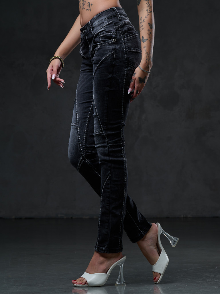 WD477 Női Egyenes Szabású Farmer Trendi Díszvarrásokkal
