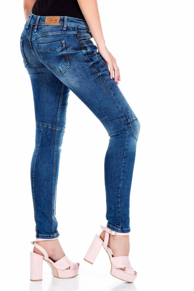 A farmernadrág továbbra is ultramodern. A Cipo & Baxx bemutatja ezt a női karcsúsított modellt, amely felugrik a divatos trendekre, és minden öltözékhez hozzáad egy bizonyos különlegességet. A kényelem és a divatos megjelenés itt kéz a kézben jár. A nagyszerű dizájnelemek a feltűnő díszvarrások, amelyek motoros stílusban készültek, és hangulatosan teszik teljessé a nadrág lezser megjelenését.