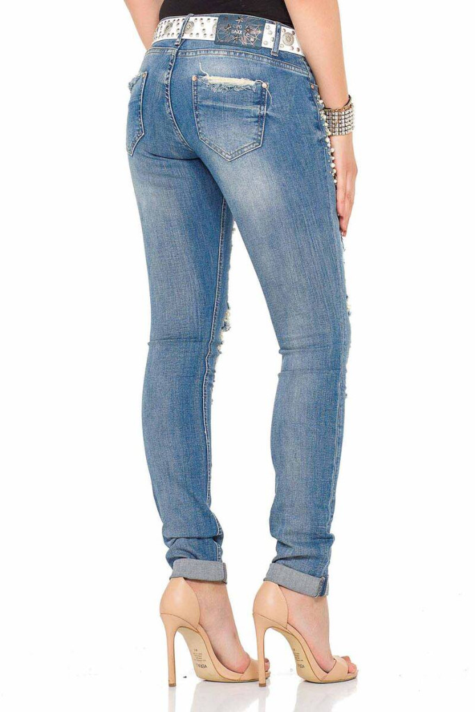 WD338 Női kényelmes farmernadrág különleges roncsolt elemekkel, szűk szabásban