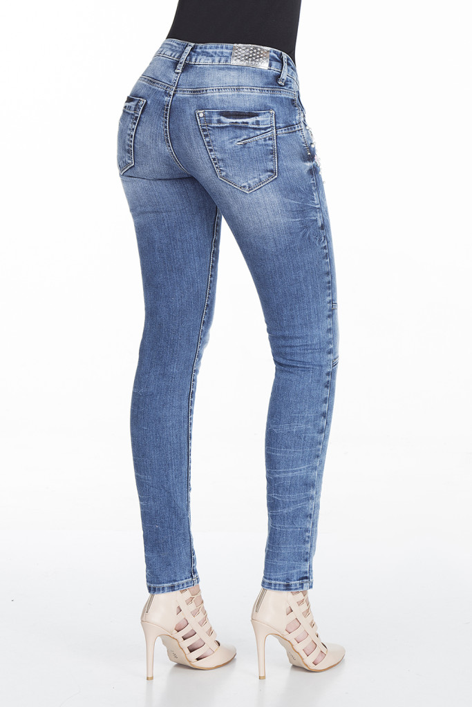 A CIPO & BAXX WD309 női farmernadrágja a nőies bájt ötvözi a divatos utcai stílussal. A zsebeken található feltűnő strassz díszítések elegáns kiegészítők, míg a divatos mosás modern megjelenést kölcsönöz. A kiváló minőségű pamutkeverék rugalmas anyaga tökéletes illeszkedést és magas szintű viselési kényelmet biztosít. Ideális kombináció – akár hétköznapi viselet sportcipővel, akár sikkes viselet magas sarkú cipővel.