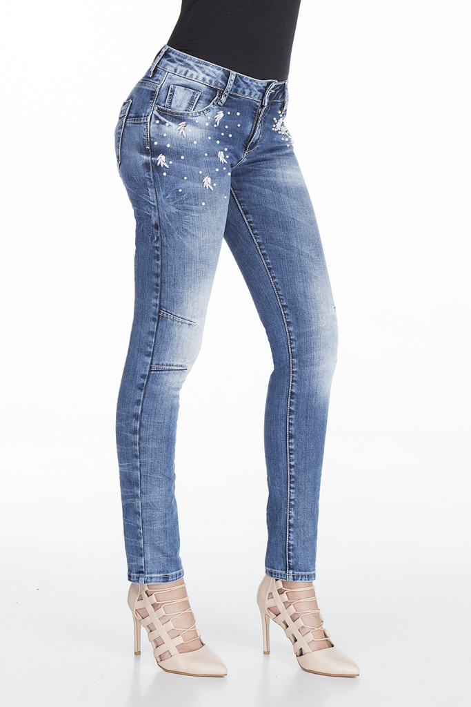 WD309 – Női farmer strassz részletekkel és divatos mosással