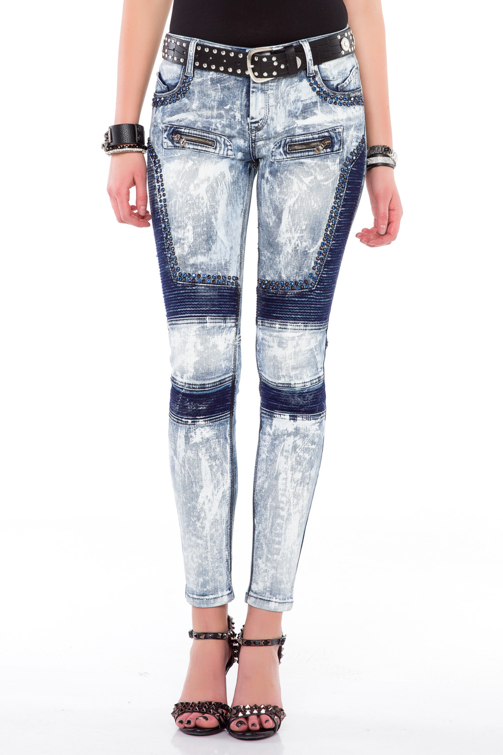 Ez a női farmer, a WD374 modell, extravagáns megjelenésével lenyűgöző. A feltűnő motoros stílust tökéletesen kiemelik a kontrasztos mosások, a feltűnő díszvarrások és a díszes cipzárak. A rugalmas pamutkeveréknek köszönhetően a farmer kényelmesen illeszkedik és optimális kényelmet biztosít. Ideális a divattudatos nők számára, akik egyedi stílust keresnek. Magas sarkú cipővel vagy sportcipővel kombinálva ez a farmer igazi tekinteteket vonz!