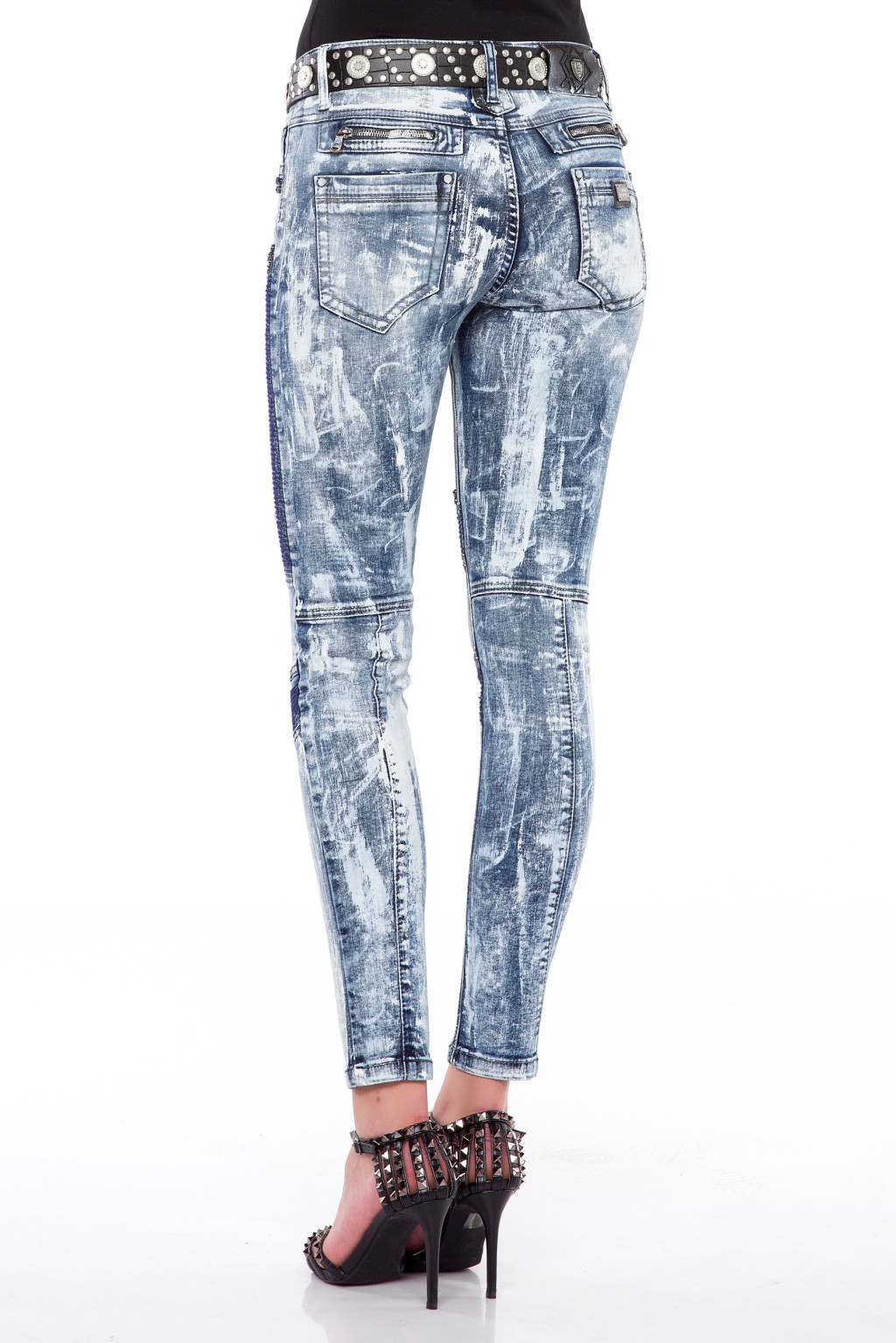 Ez a női farmer, a WD374 modell, extravagáns megjelenésével lenyűgöző. A feltűnő motoros stílust tökéletesen kiemelik a kontrasztos mosások, a feltűnő díszvarrások és a díszes cipzárak. A rugalmas pamutkeveréknek köszönhetően a farmer kényelmesen illeszkedik és optimális kényelmet biztosít. Ideális a divattudatos nők számára, akik egyedi stílust keresnek. Magas sarkú cipővel vagy sportcipővel kombinálva ez a farmer igazi tekinteteket vonz!