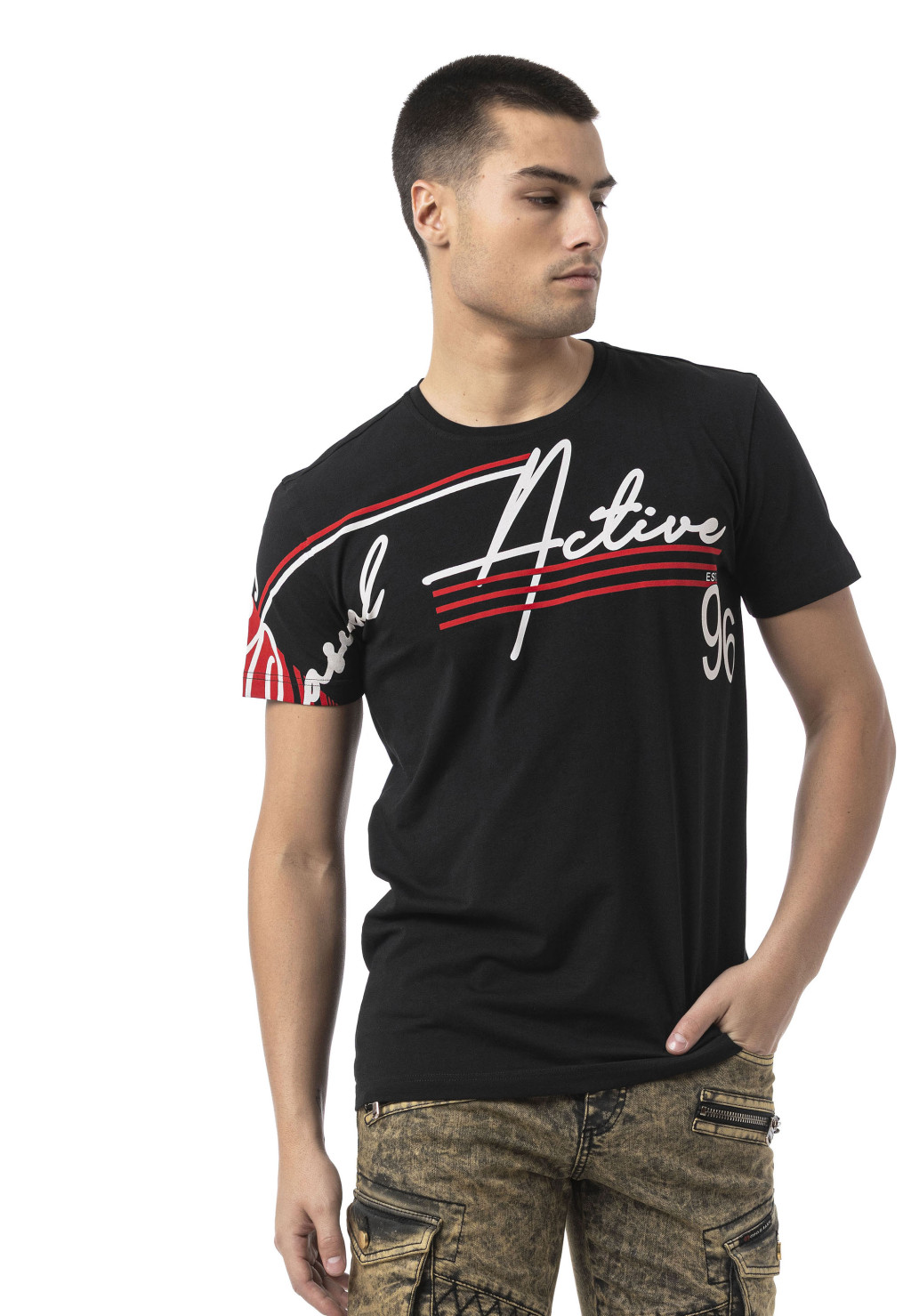 A CT796 férfi póló sportos, modern stílusával lenyűgöző. Klasszikus fekete színben kapható, és feltűnő "Active" feliratú mintával és piros díszítéssel rendelkezik a mellkasán. A kerek nyak kényelmes viseletet biztosít, míg a normál szabás laza megjelenést garantál. A kiváló minőségű Empire mintának köszönhetően a fazon sok mosás után is megőrzi formáját. Tökéletes szabadidős, mindennapi viseletre vagy sporttevékenységekhez. Kombináld farmerrel vagy rövidnadrággal a stílusos megjelenésért.