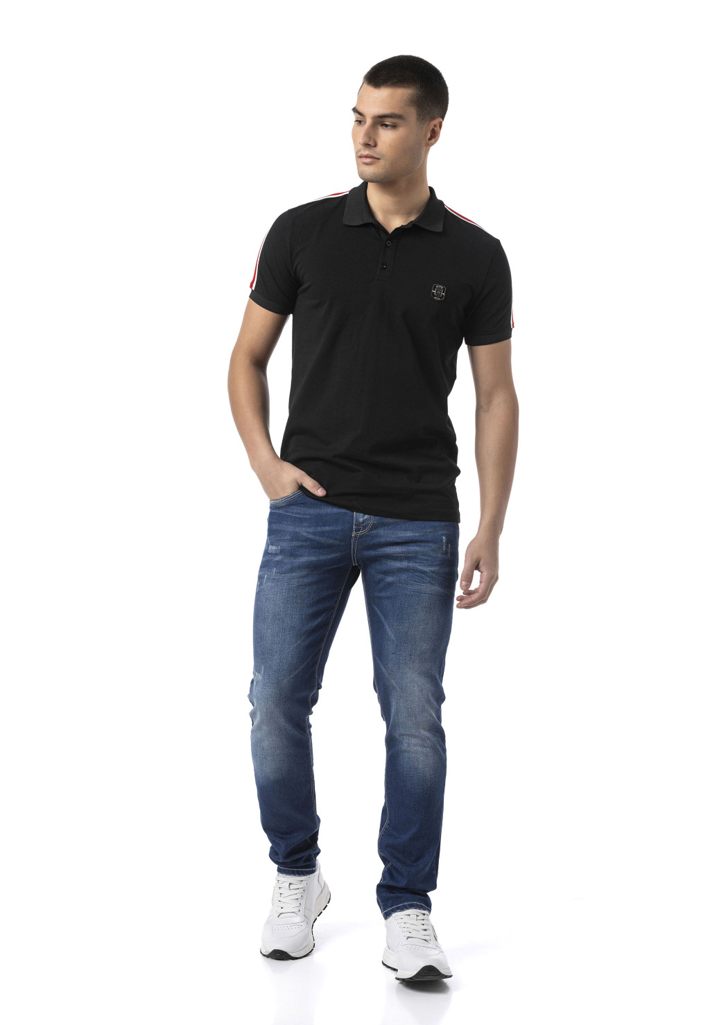 CT801 - Férfi póló logóval és stílusos ujjakkal