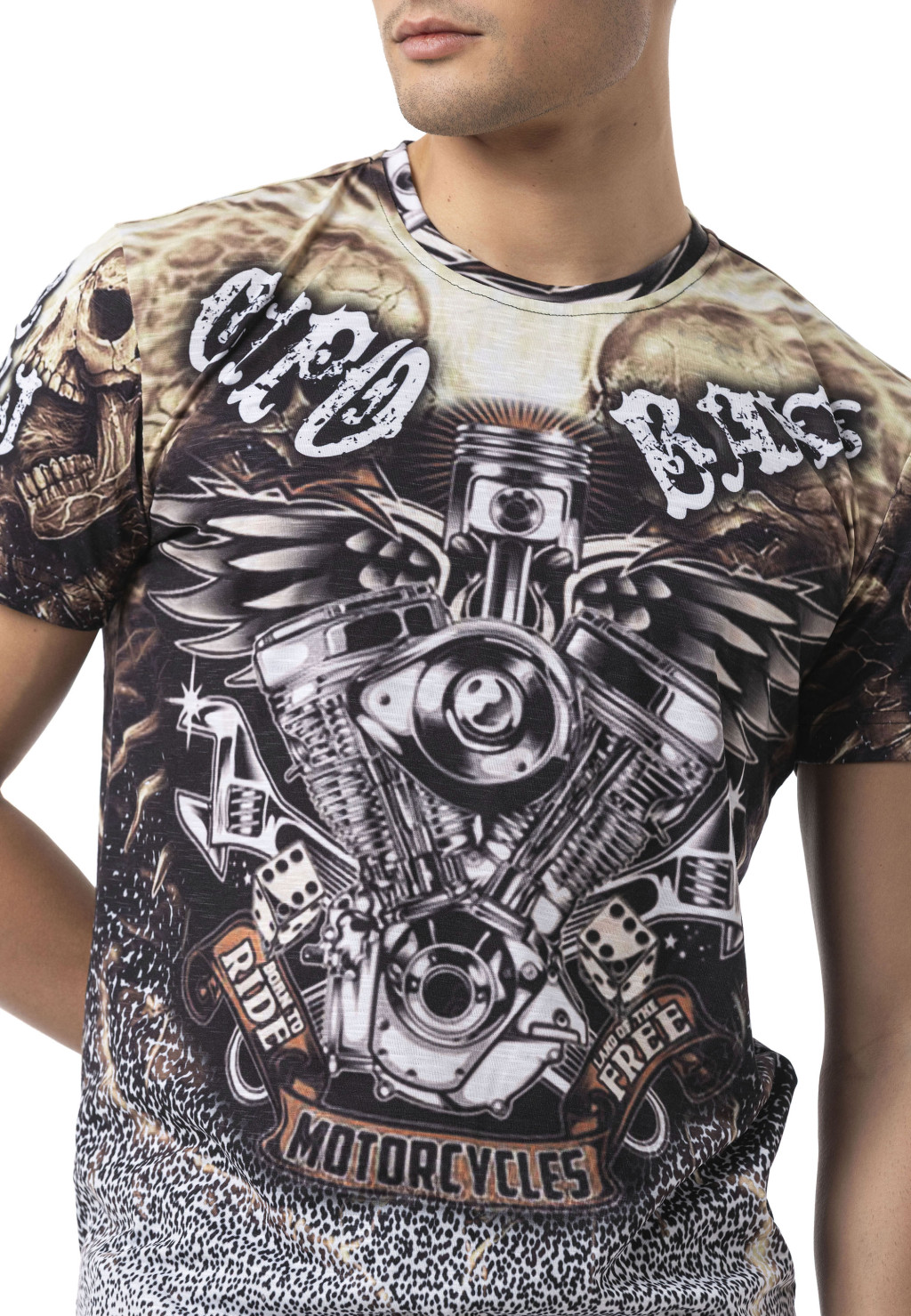 Fedezze fel stílusos, kerek nyakú férfi pólónkat, amelyen feltűnő, teljes felületen nyomtatott minta található elöl és hátul. Ez a póló nemcsak divatos kijelentés, hanem tisztelgés a motorok iránti szenvedély előtt is. A feltűnő "Motorcycles" felirat vagány, városi megjelenést kölcsönöz a pólónak, amely tökéletes a motorkerékpár-rajongók és a trenddiktátorok számára.