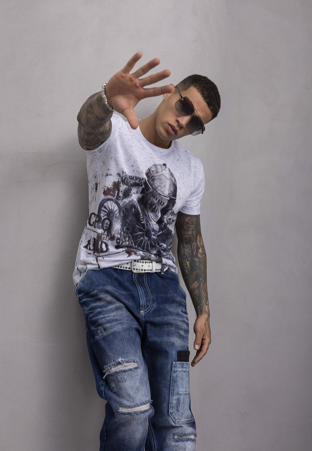 A Cipo & Baxx CT828 férfi pólója a kényelmet a feltűnő dizájnnal ötvözi. Kiváló minőségű anyagból készült, kényelmes viseletet és modern megjelenést biztosít. A feltűnő minta egy teljes páncélzatú lovagot ábrázol, dinamikus grafikai elemekkel körülvéve – tökéletes azoknak a férfiaknak, akik erőteljes részletekkel szeretnék hangsúlyozni stílusukat. Rövid ujjú, klasszikus kerek nyakú kivágásával ez az ing sokoldalú, akár hétköznapokra, akár feltűnő darabként viselhető.