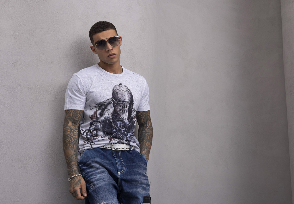 A Cipo & Baxx CT828 férfi pólója a kényelmet a feltűnő dizájnnal ötvözi. Kiváló minőségű anyagból készült, kényelmes viseletet és modern megjelenést biztosít. A feltűnő minta egy teljes páncélzatú lovagot ábrázol, dinamikus grafikai elemekkel körülvéve – tökéletes azoknak a férfiaknak, akik erőteljes részletekkel szeretnék hangsúlyozni stílusukat. Rövid ujjú, klasszikus kerek nyakú kivágásával ez az ing sokoldalú, akár hétköznapokra, akár feltűnő darabként viselhető.