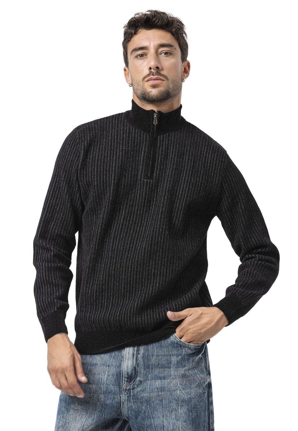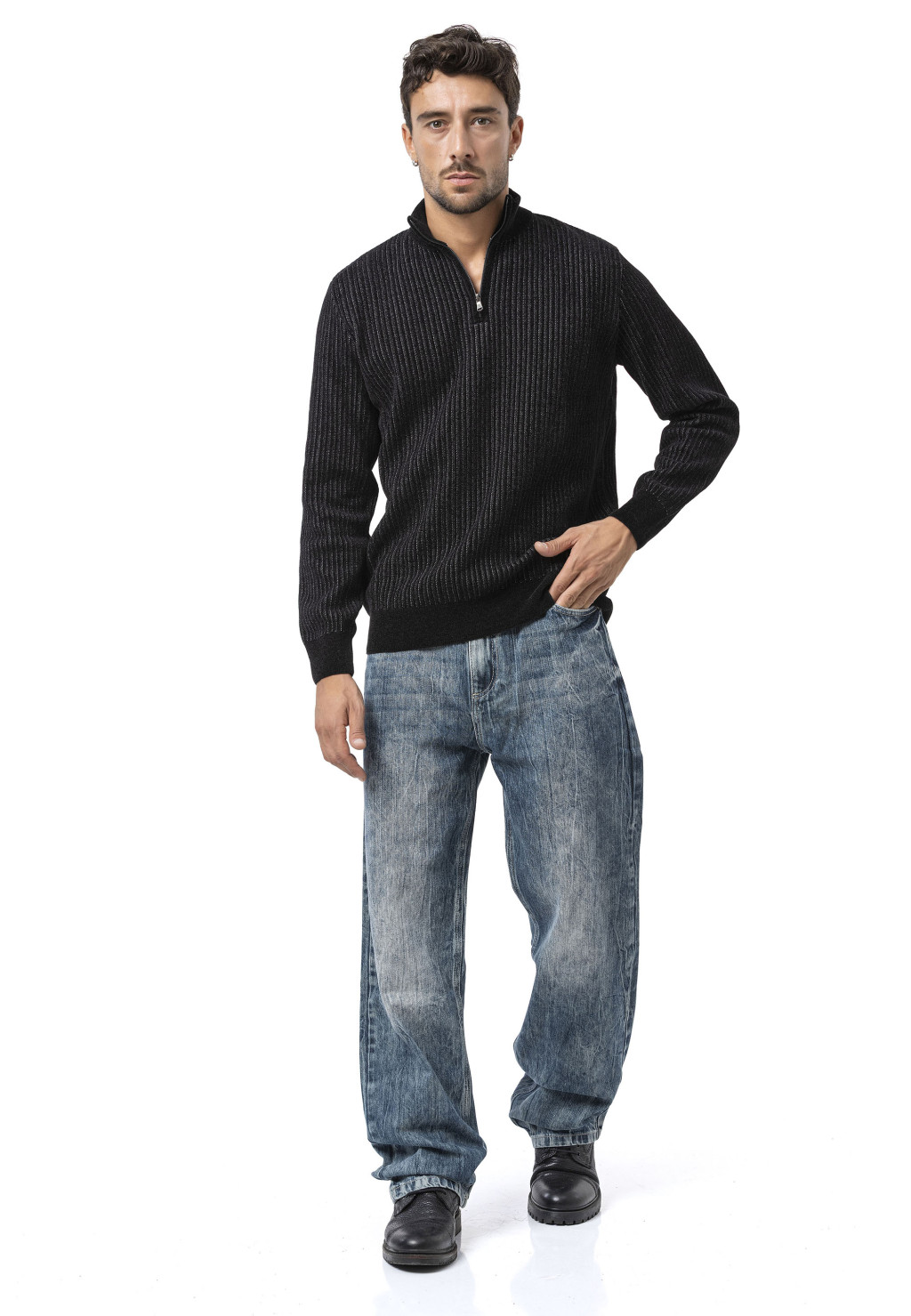 Klassisch, maskulin und stilvoll: Dieser hochwertige Herren-Strickpullover mit Reißverschluss ist ein echtes Must-have für kühle Tage. Das dezente Rippstrickmuster in Schwarz-Melange verleiht dem Pullover eine elegante Struktur und macht ihn vielseitig kombinierbar – egal ob fürs Büro, den Alltag oder den Abend-Look.