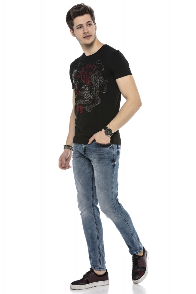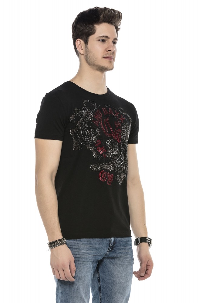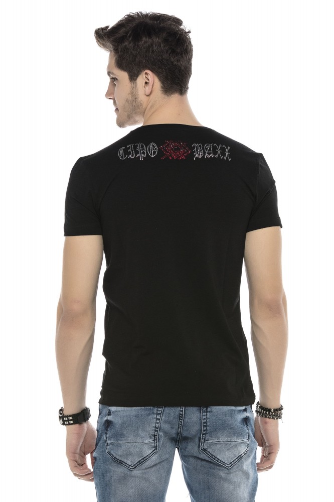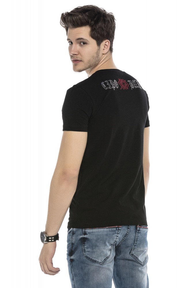 Cipo & Baxx limitált darabszámú, prémium minőségű, kerek nyakú, divatos férfi póló köves díszítéssel.