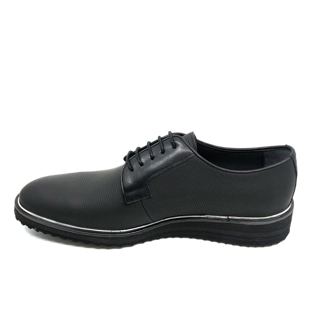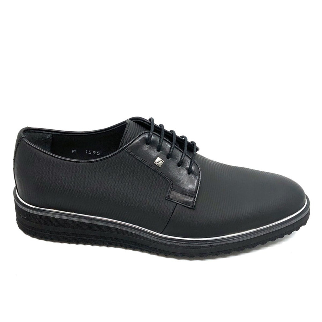 A Fosco 1595-ös modell azoknak a férfiaknak készült, akik a klasszikus eleganciát egy kis modern csavarral szeretnék feldobni. A cipő különlegessége a finom csíkozású (vonalas) mintázat, amely a matt fekete valódi bőrön különleges, texturált megjelenést kölcsönöz a lábbelinek.