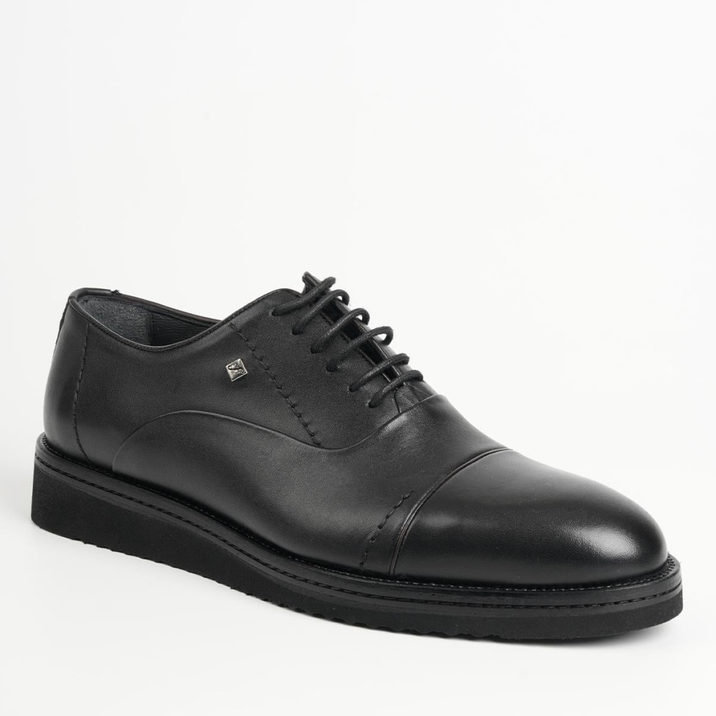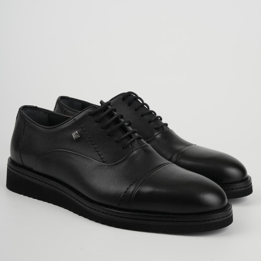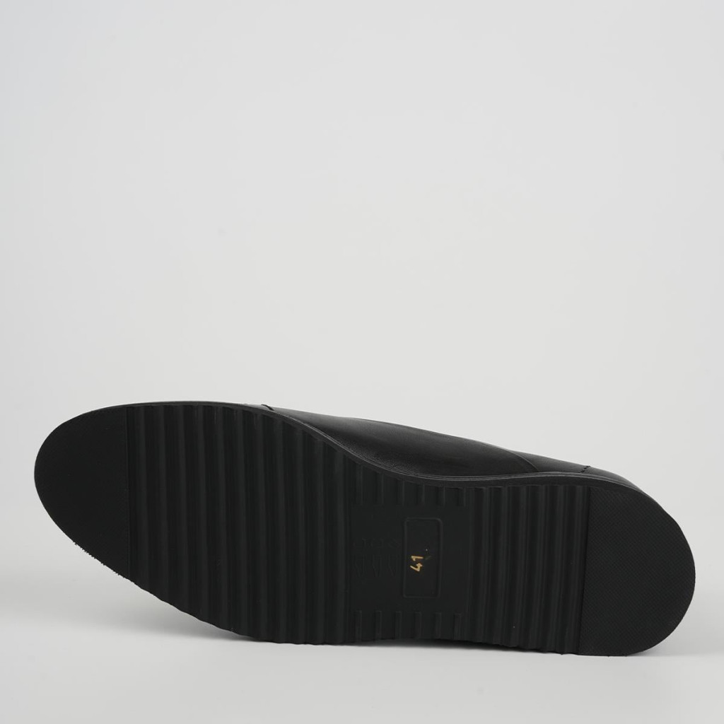 A felsőrész prémium minőségű valódi  bőrből készült, amely egyszerre tartós és elegáns. A fekete szín mélysége és a bőr finom fénye hivatalos alkalmakhoz is alkalmassá teszi a modellt.