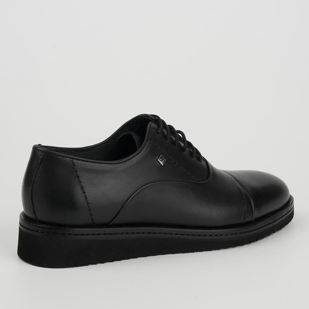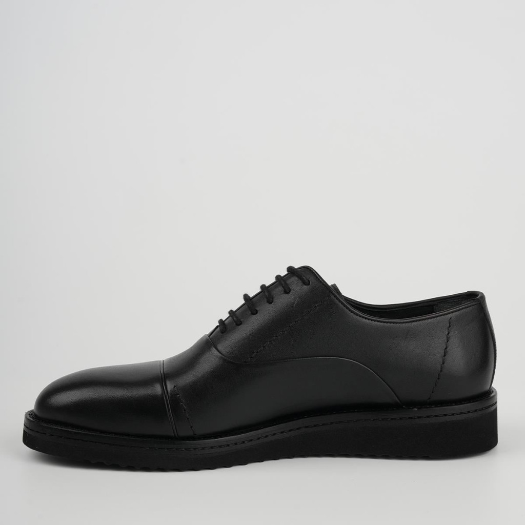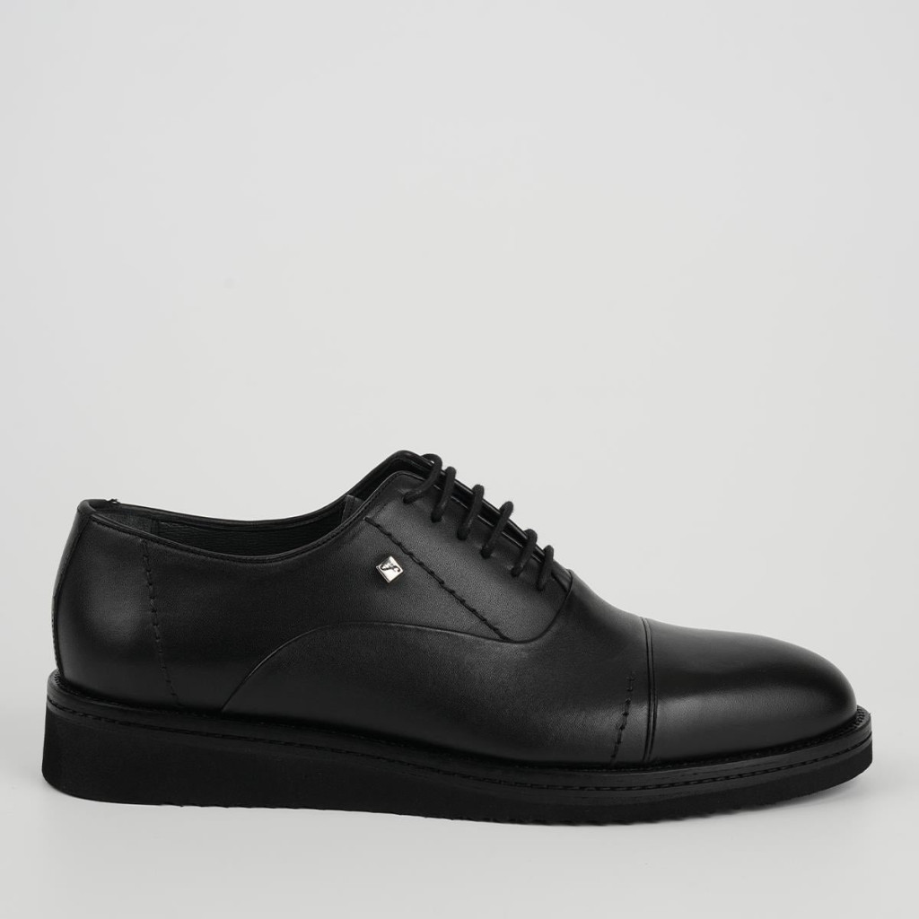 A felsőrész prémium minőségű valódi  bőrből készült, amely egyszerre tartós és elegáns. A fekete szín mélysége és a bőr finom fénye hivatalos alkalmakhoz is alkalmassá teszi a modellt.