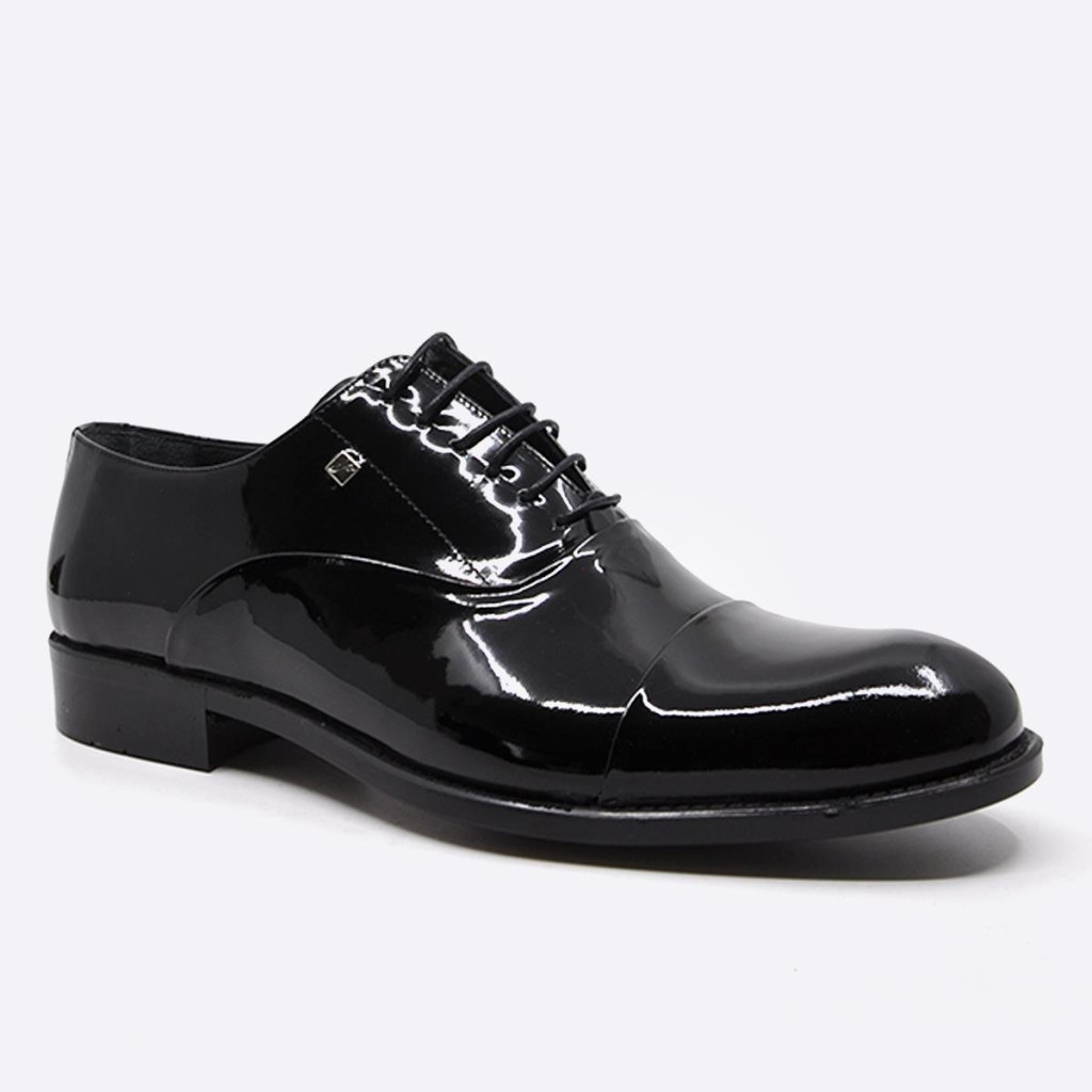 A cipő felsőrésze válogatott, valódi bőrből készült, amely magasfényű lakk bevonatot kapott. Ez nemcsak luxus megjelenést kölcsönöz, hanem tartósságot is biztosít.
