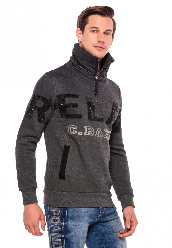 CIPO & BAXX DIVATOS FÉRFI GALLÉROS PULÓVER CL385ANTHRACITE